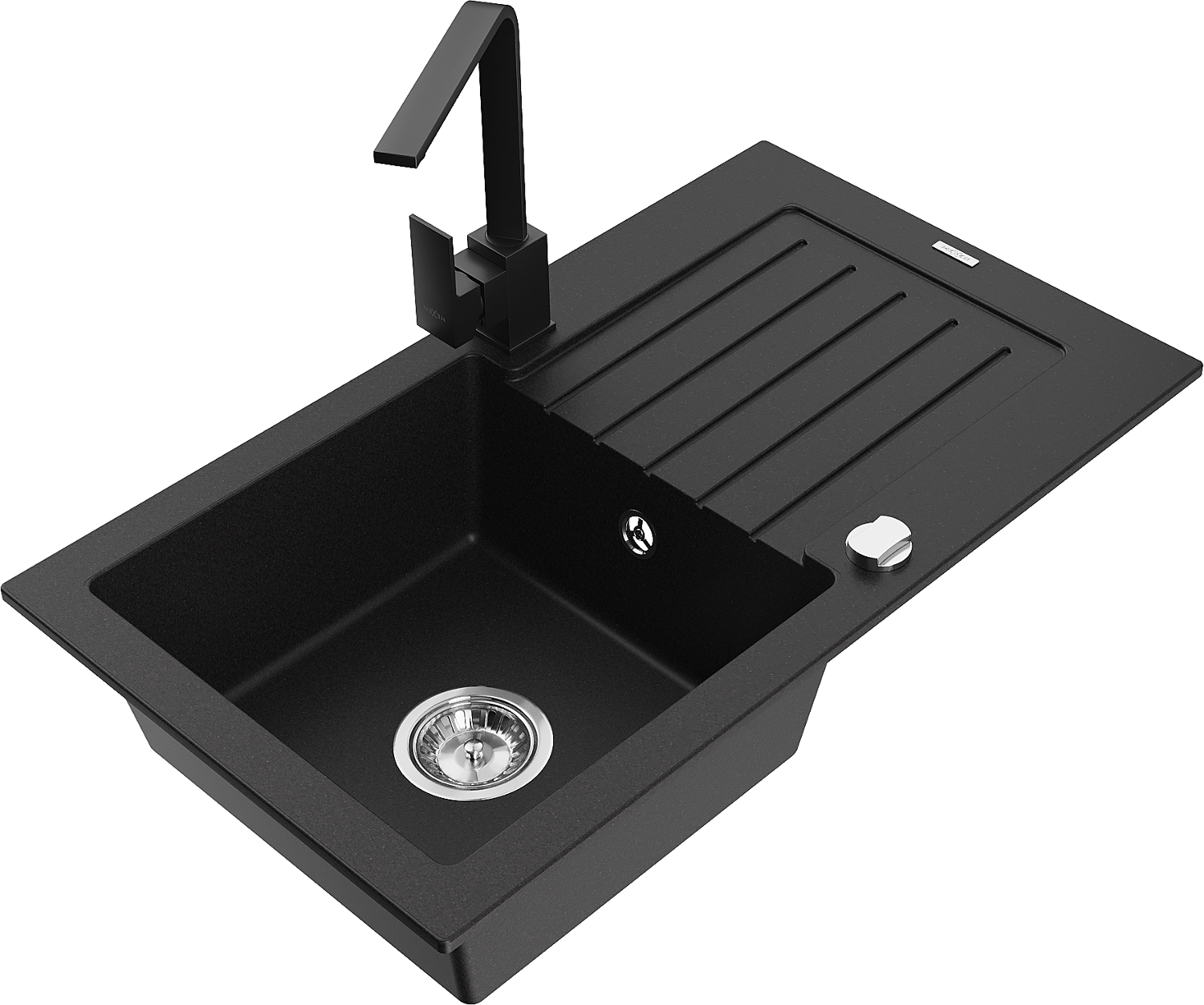 Mexen Pablo granito kriauklė su viena plautuve ir maišytuvu Ritos, juoda - 6510-77-670300-70