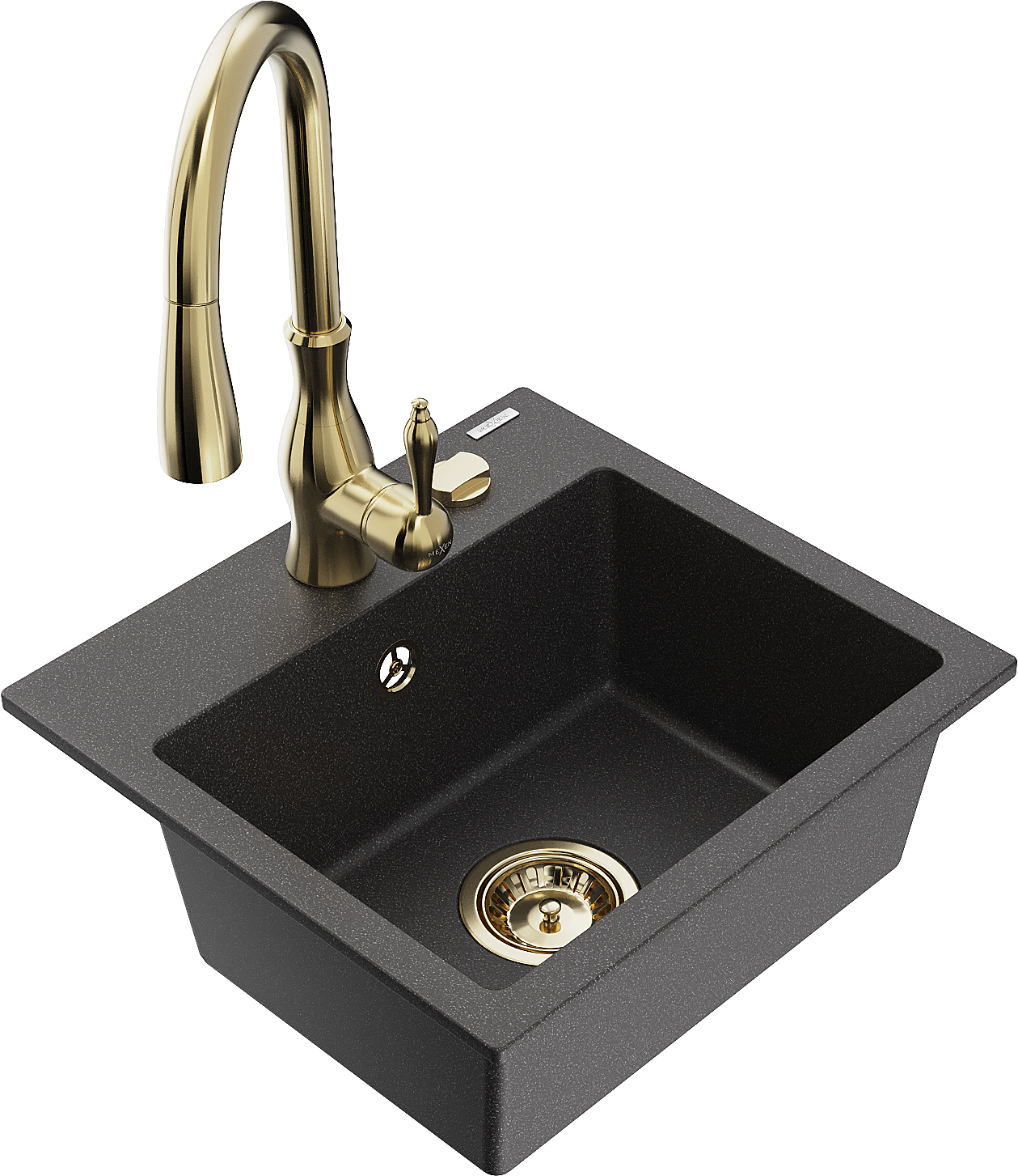 Mexen Milo granitinis vienos kameros plautuvė su virtuviniu maišytuvu Savita, juoda dėmėta - 6505-76-672601-50