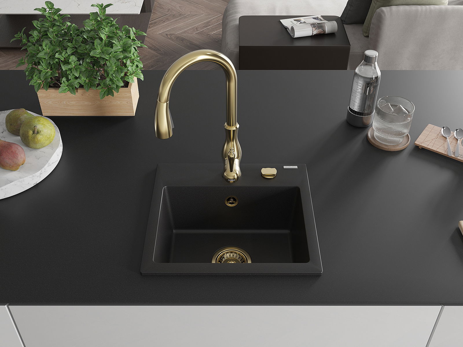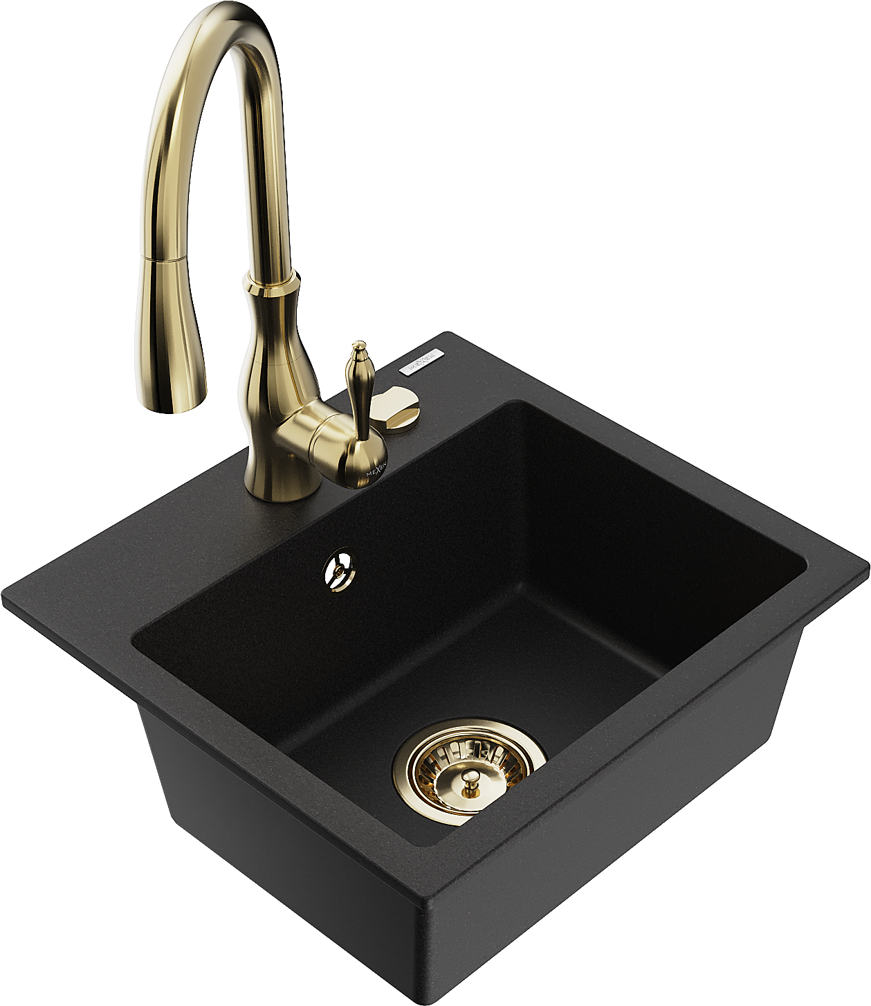 Mexen Milo granitinė vienos kameros kriauklė su Savita virtuviniu maišytuvu, juodas - 6505-77-672601-50