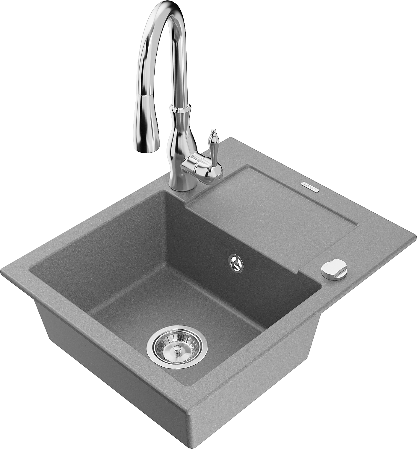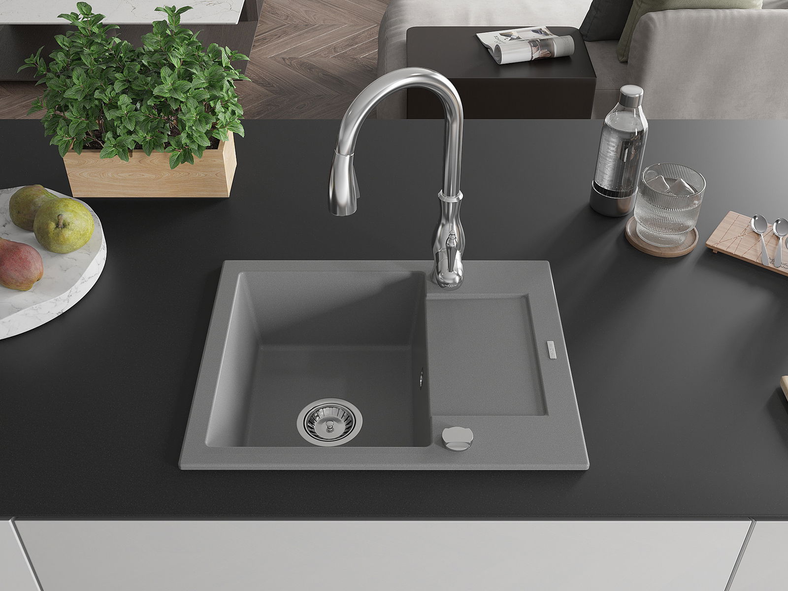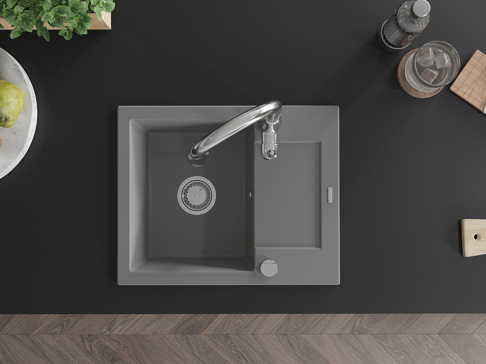 Mexen Enzo granito plautuvė su viena kamera ir nutekėjimu, su Savita virtuvės čiaupu, pilka - 6506-71-672601-00