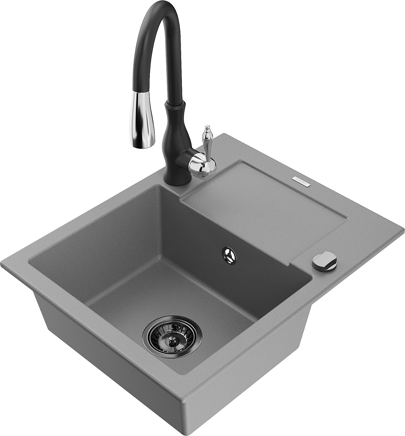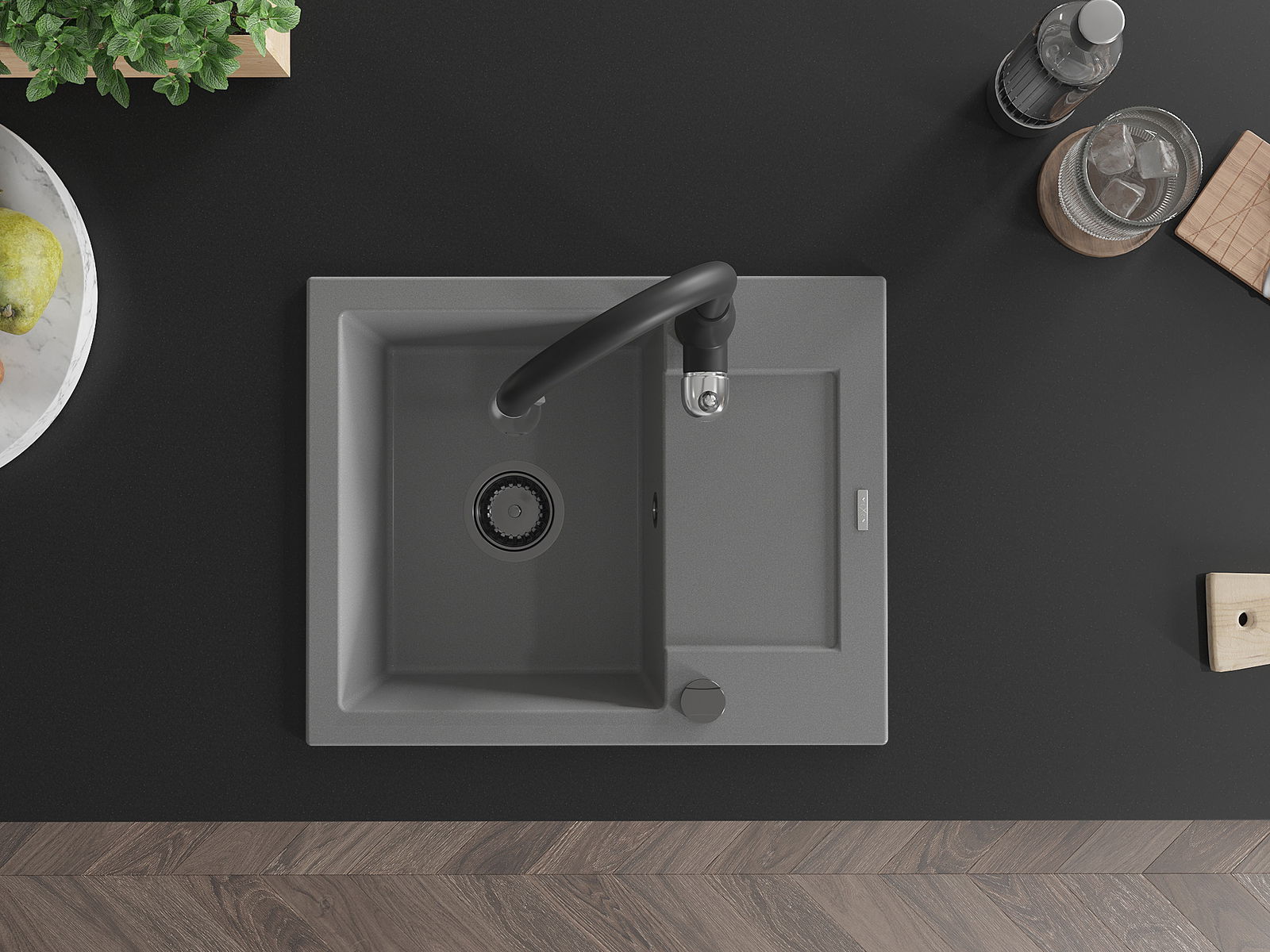 Mexen Enzo granito virtuvės kriauklė su viena kamera ir džiovykle bei virtuvės maišytuvu Savita, pilka - 6506-71-672601-70-B