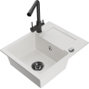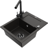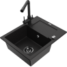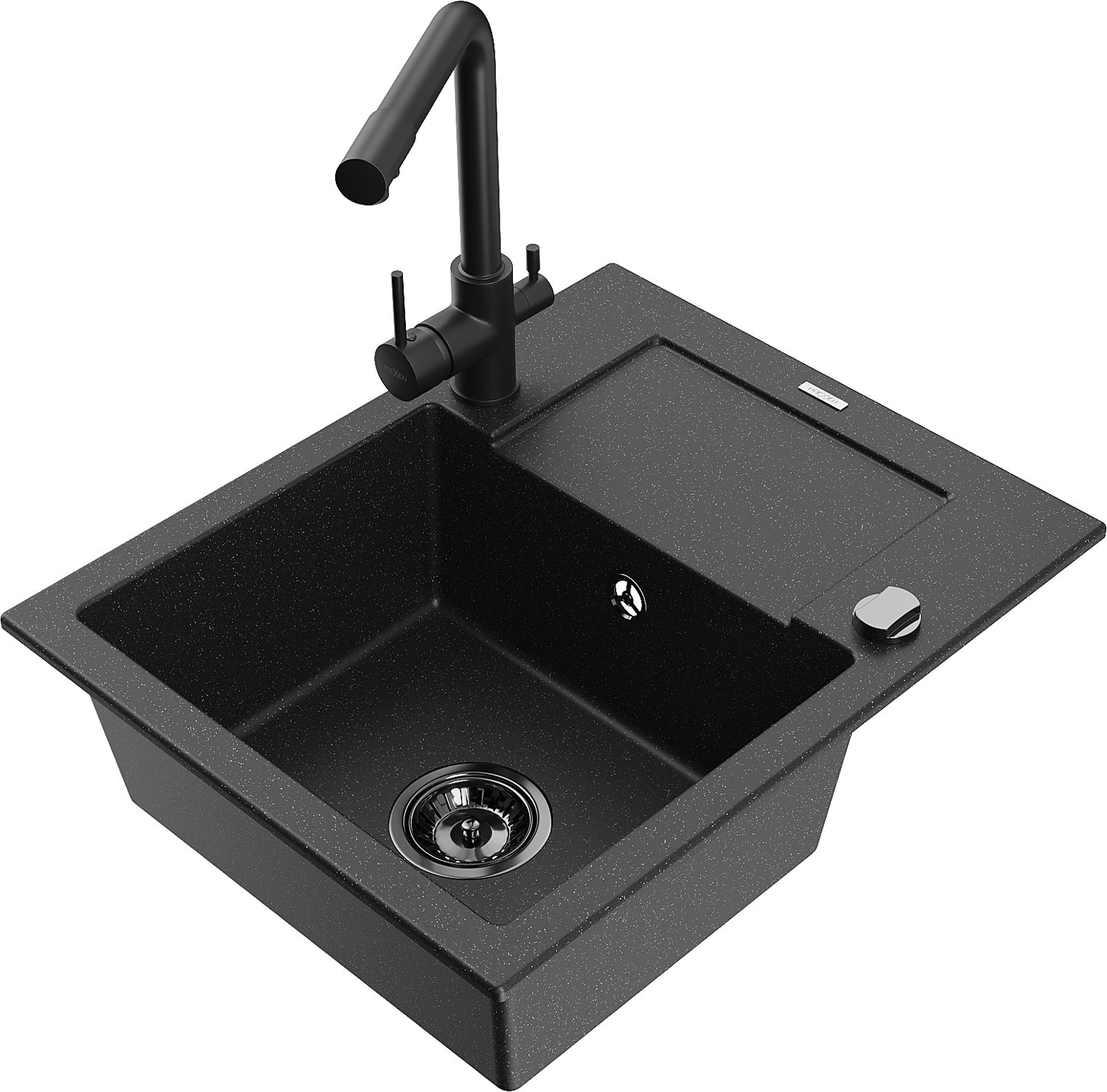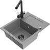 Mexen Enzo granitinė vienos sekcijos kriauklė su nutekėjimu ir virtuviniu maišytuvu Duero, juodos/sidabrinės spalvos