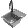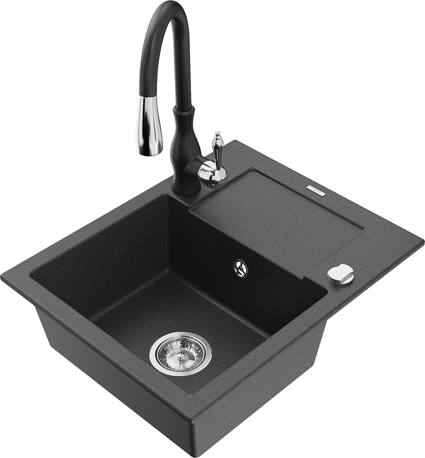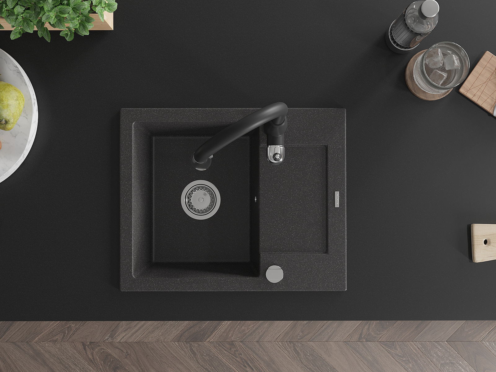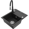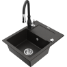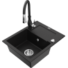 Mexen Enzo granitinė vienos kameros virtuvės kriauklė su nusausintuvu ir virtuvine maišytuvu Savita, juoda su taškeliais