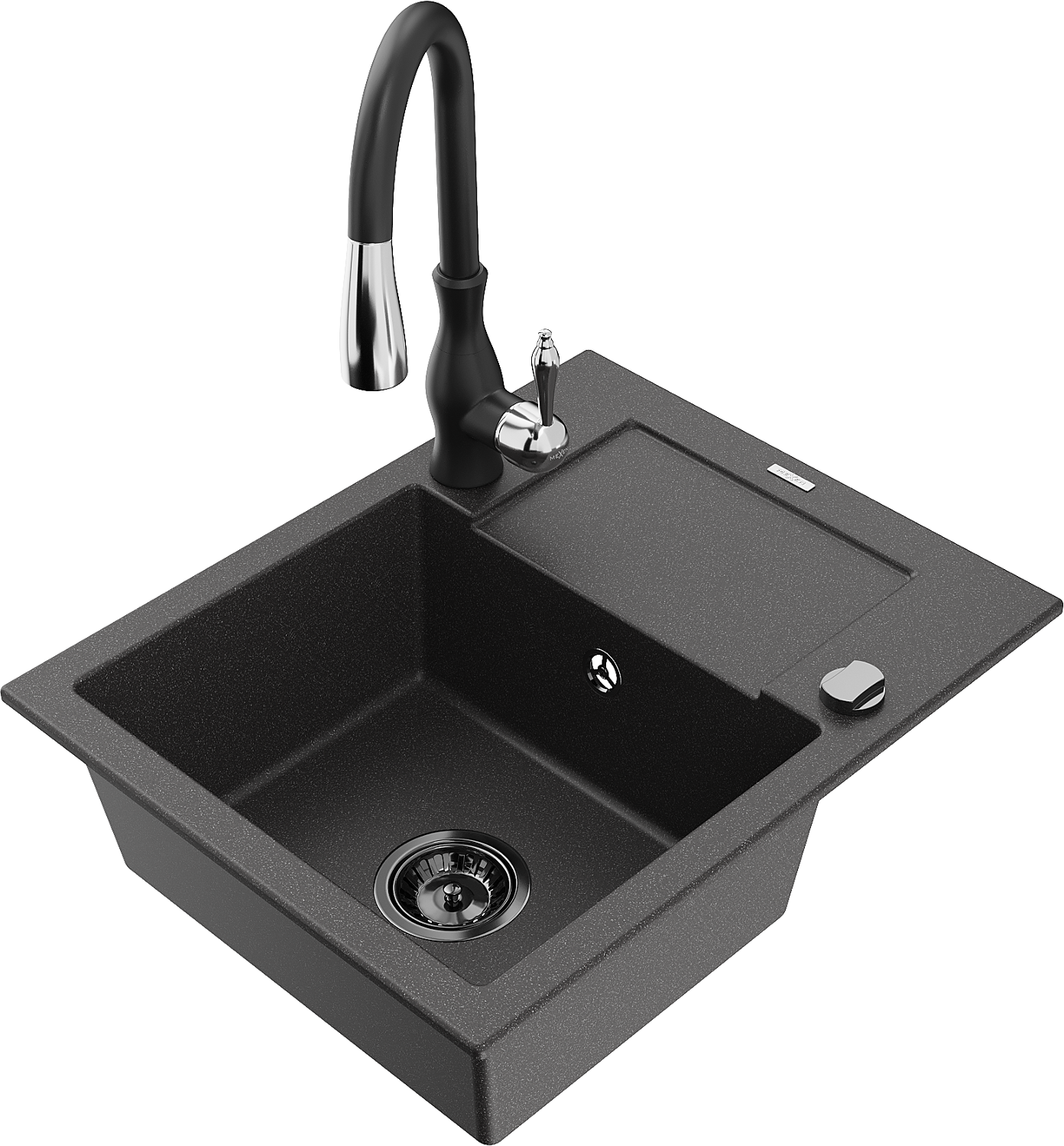 Mexen Enzo vienos plautuvės skyrelio plautuvė su nutekėjimu ir virtuviniu maišytuvu Savita, juodas su dėmėmis - 6506-76-672601-?