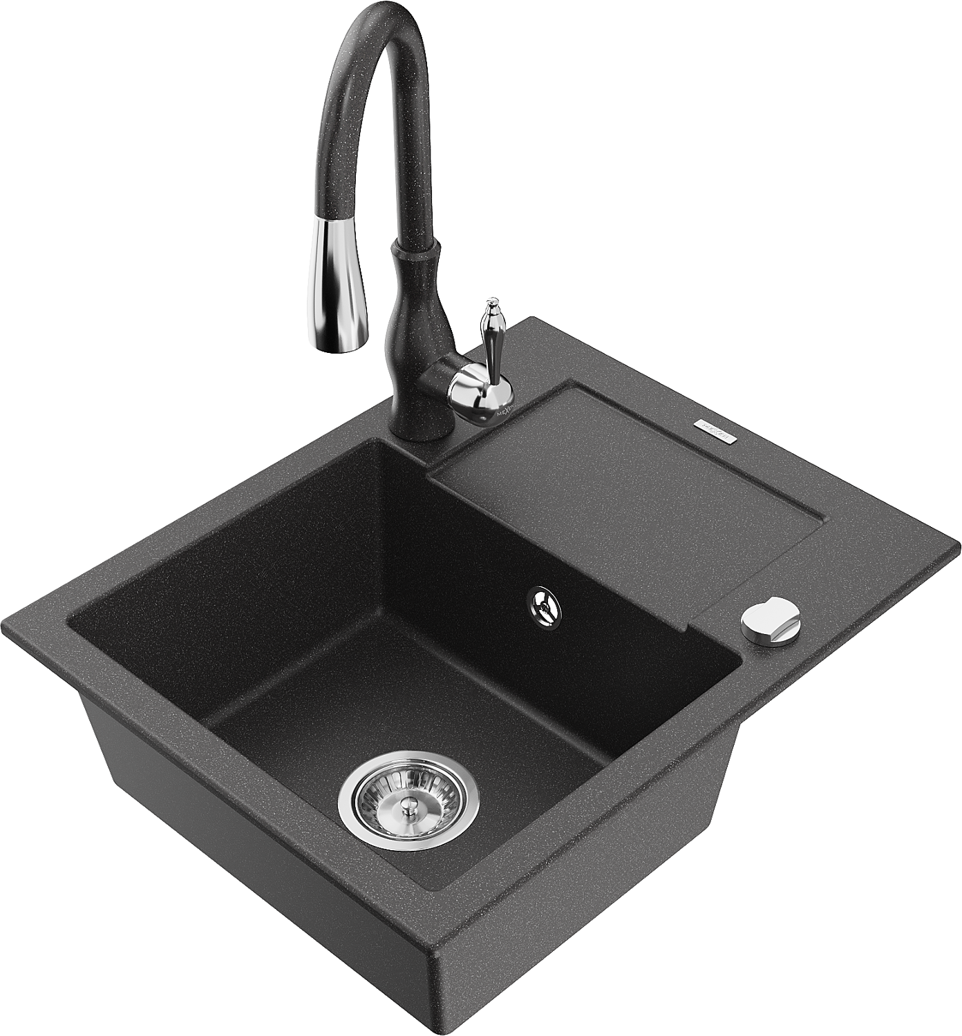 Mexen Enzo granitinis plautuvas su viena kamera, lašintuvu ir virtuviniu maišytuvu Savita, juodas taškuotas - 6506-76-672601-76
