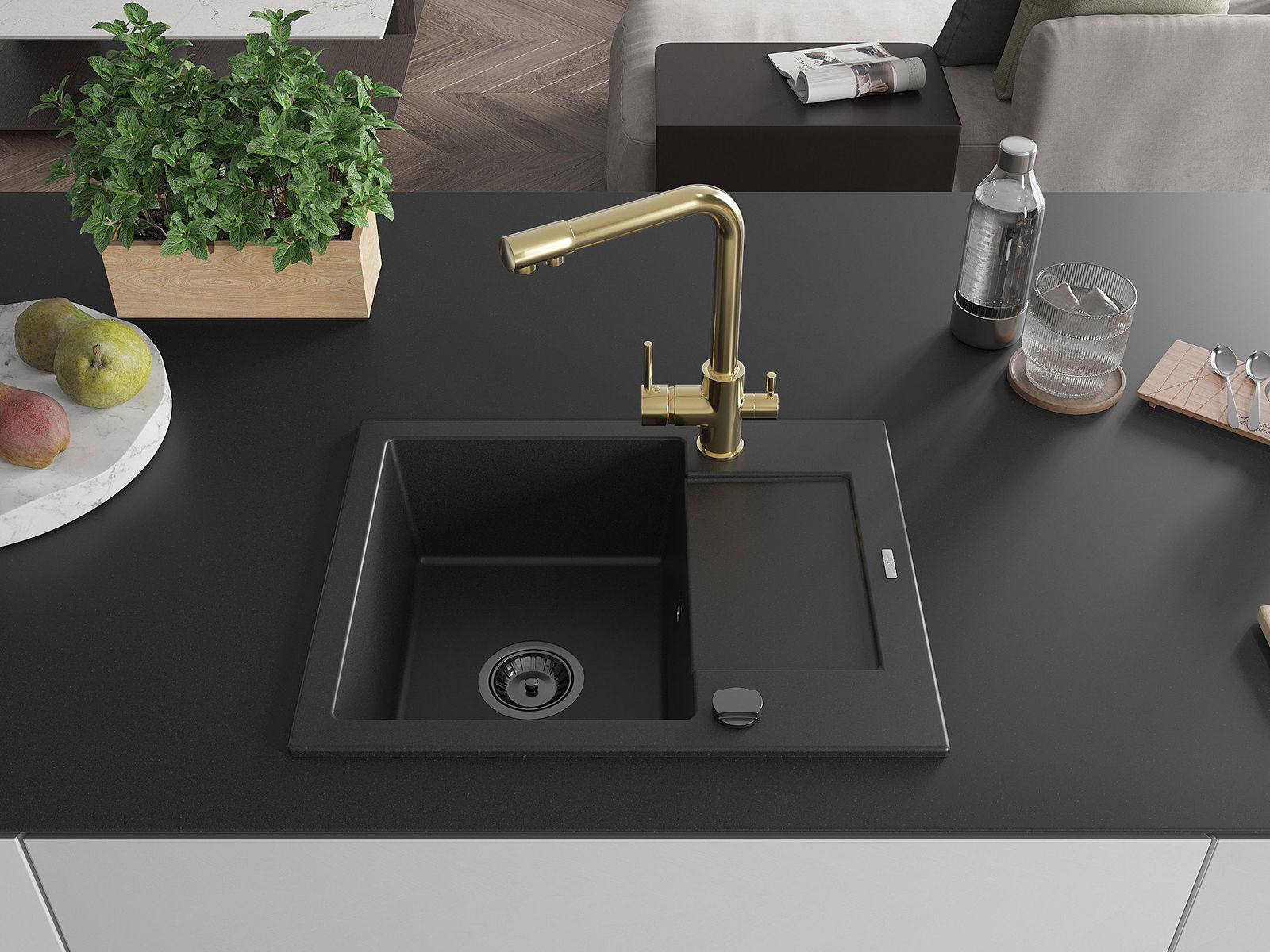 Kriauklės paviršius yra atsparūs dėmėms ir spalvos pasikeitimui, dėl kurio lengva valyti ir ilgą laiką išlaikyti savo spalvą. Estetinis ir praktiškai papildantis kiekvieną virtuvę.