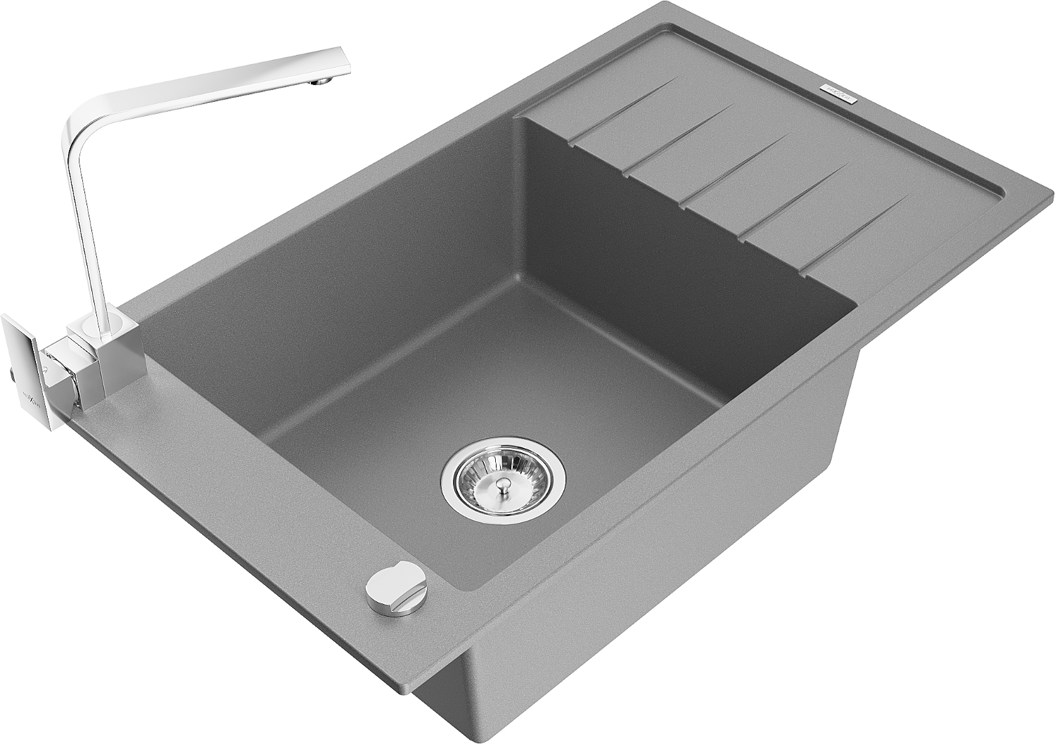 Mexen Elias granito plautuvė su viena kamera, nuvarvėjimo paviršiumi ir Rita virtuviniu maišytuvu, pilkas - 6511-71-670300-00