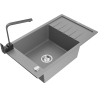 Mexen Elias granitinė vienos kameros plautuvė su nuvarvėjimo dalimi ir virtuviniu maišytuvu Rita, juoda/sidabrinė metalo spalva?