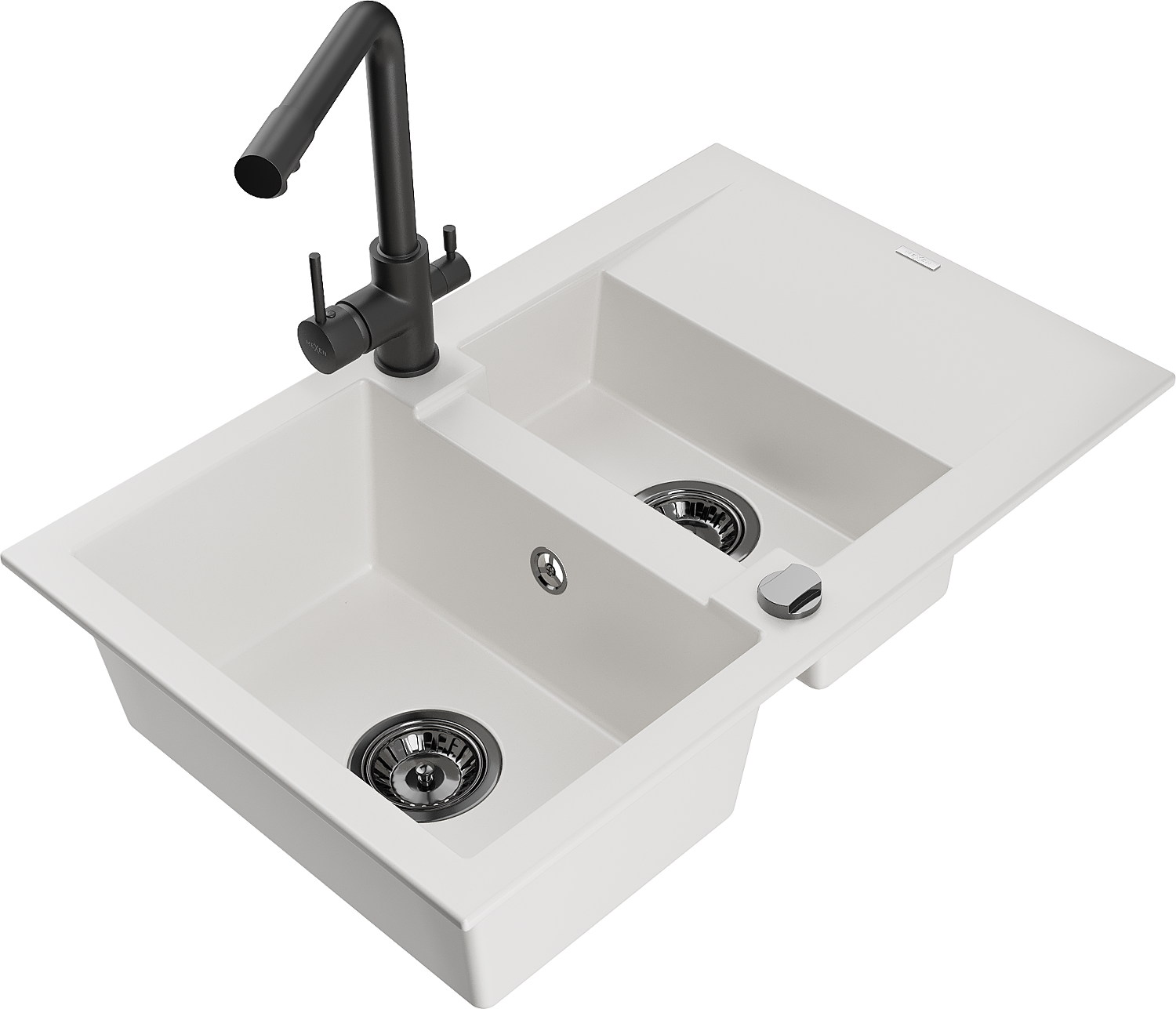 Mexen Gaspar granitinis 1,5 skylių kriauklė su nutekėjimu ir virtuviniu maišytuvu Duero, balta - 6507-20-671600-70