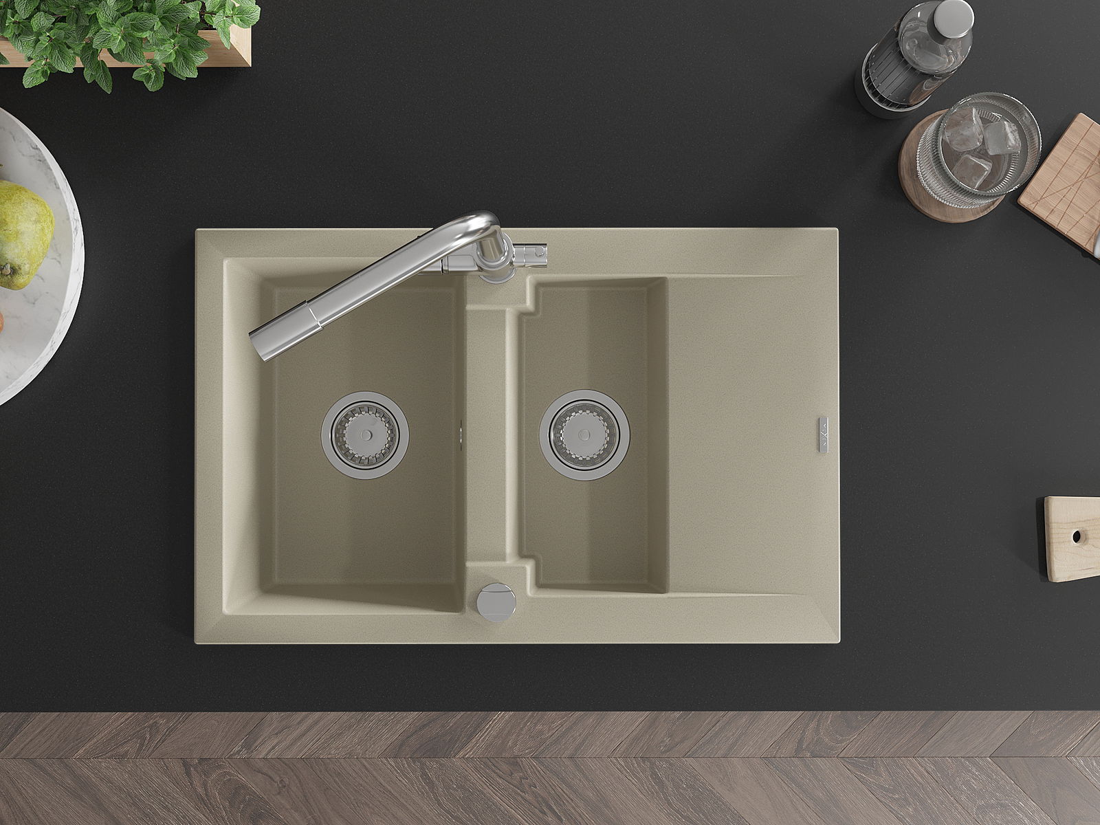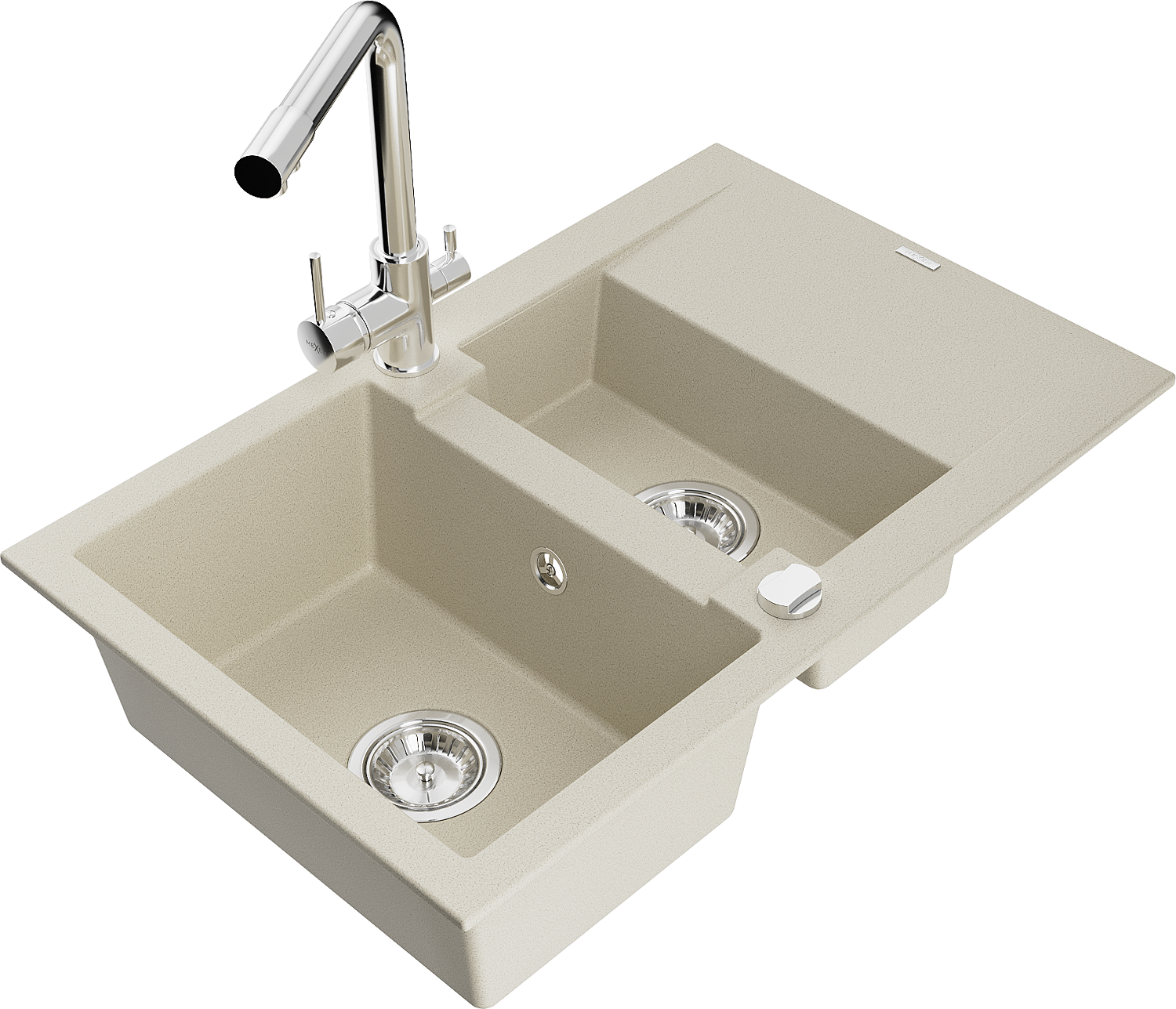 Mexen Gaspar granitinė virtuvės kriauklė 1,5 skyrių su nuvarvėtu ir virtuvės čiaupu Duero, smėlio spalvos - 6507-69-671600-00
