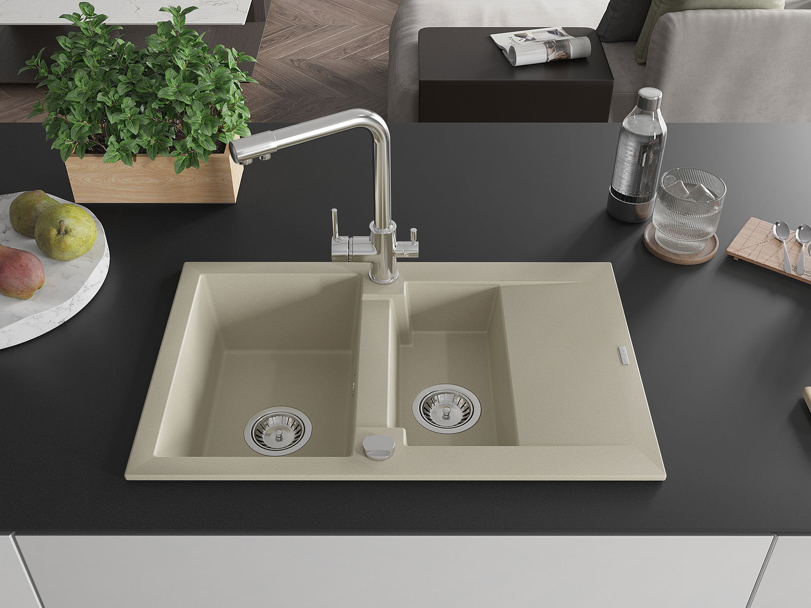 Kriauklės paviršius yra atsparūs dėmėms ir spalvos pasikeitimui, dėl kurio lengva valyti ir ilgą laiką išlaikyti savo spalvą. Estetinis ir praktiškai papildantis kiekvieną virtuvę.