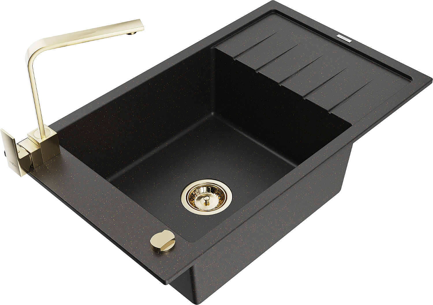 Mexen Elias granitinis virtuvės kriauklė su vienu dubeniu ir drenažu bei virtuvės maišytuvu Rita, juodas/auksinis metalikas - 6?