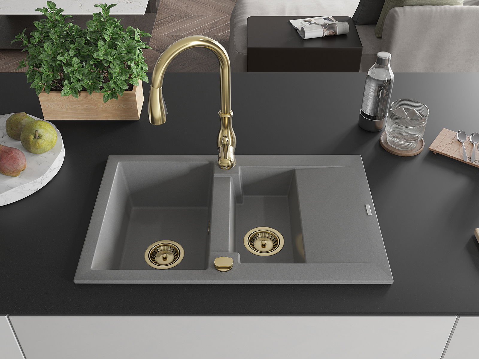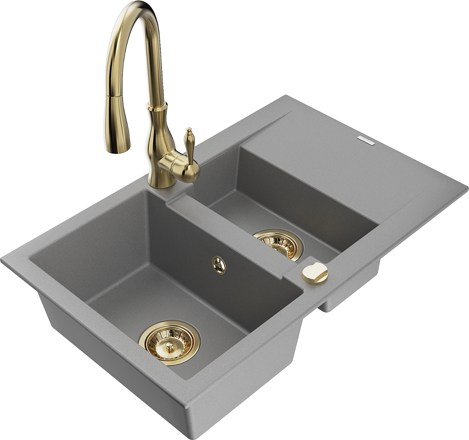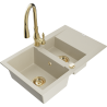 Mexen Gaspar granitinė virtuvės kriauklė 1,5 skyrių su nutekėjimu ir virtuvės maišytuvu Savita, pilka - 6507-71-672601-50