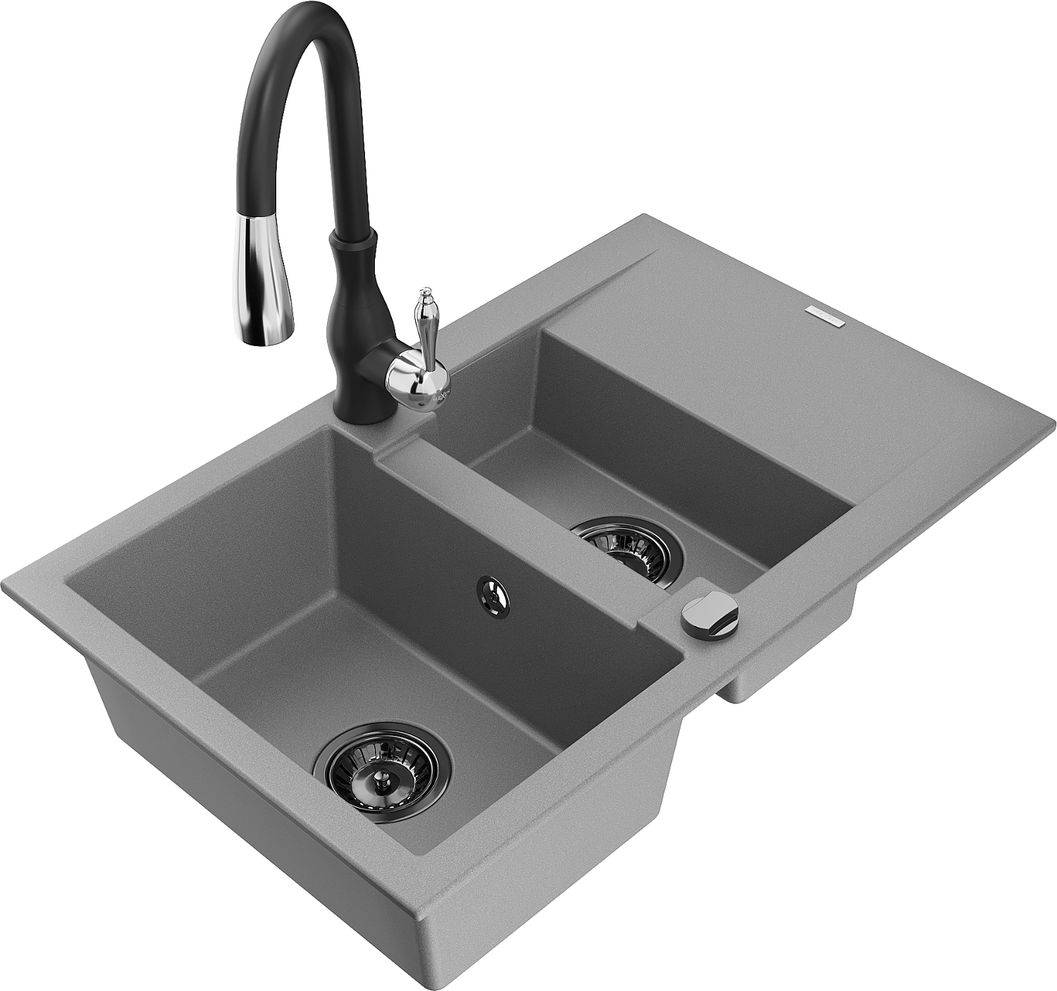 Mexen Gaspar granito kriauklė 1,5 skyrių su nusausintuvu ir virtuvės maišytuvu Savita, pilka - 6507-71-672601-70-B