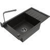 Mexen Elias granitinė vienos komeros plautuvė su indų dėklo ir virtuviniu maišytuvu Rita, juodas su taškeliais