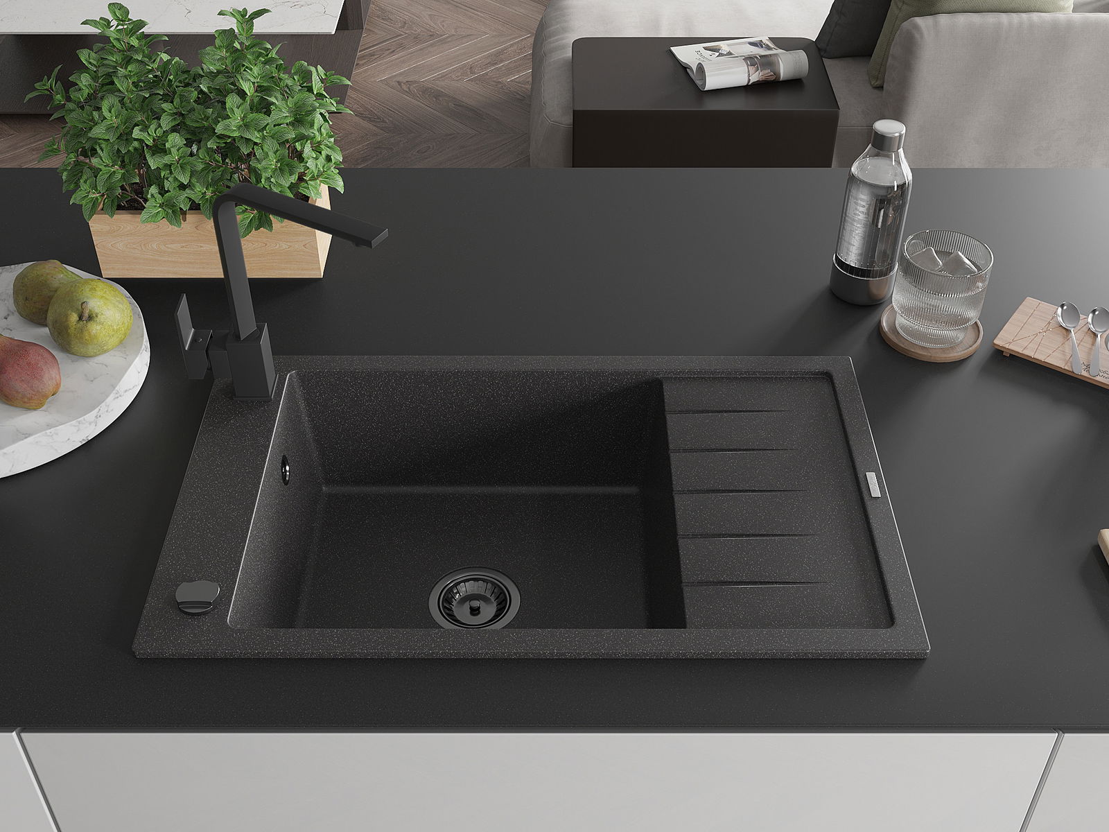 Kriauklės paviršius yra atsparūs dėmėms ir spalvos pasikeitimui, dėl kurio lengva valyti ir ilgą laiką išlaikyti savo spalvą. Estetinis ir praktiškai papildantis kiekvieną virtuvę.