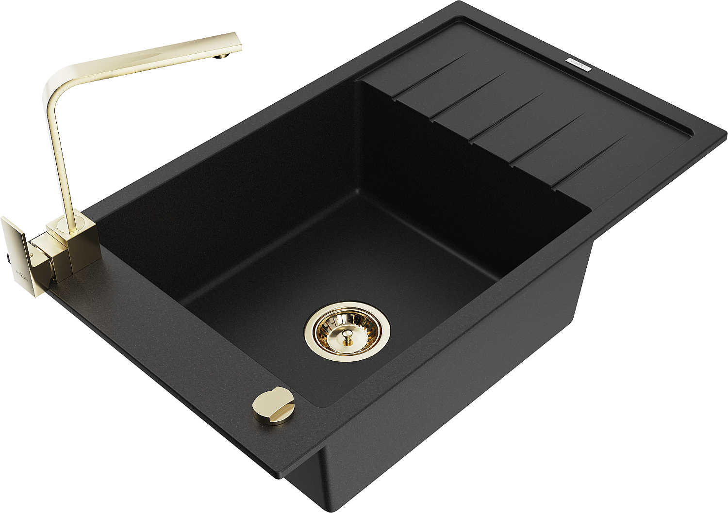 Mexen Elias 1 skyrių granito plautuvė su nusausintuvu ir virtuviniu maišytuvu Rita, juoda - 6511-77-670300-50