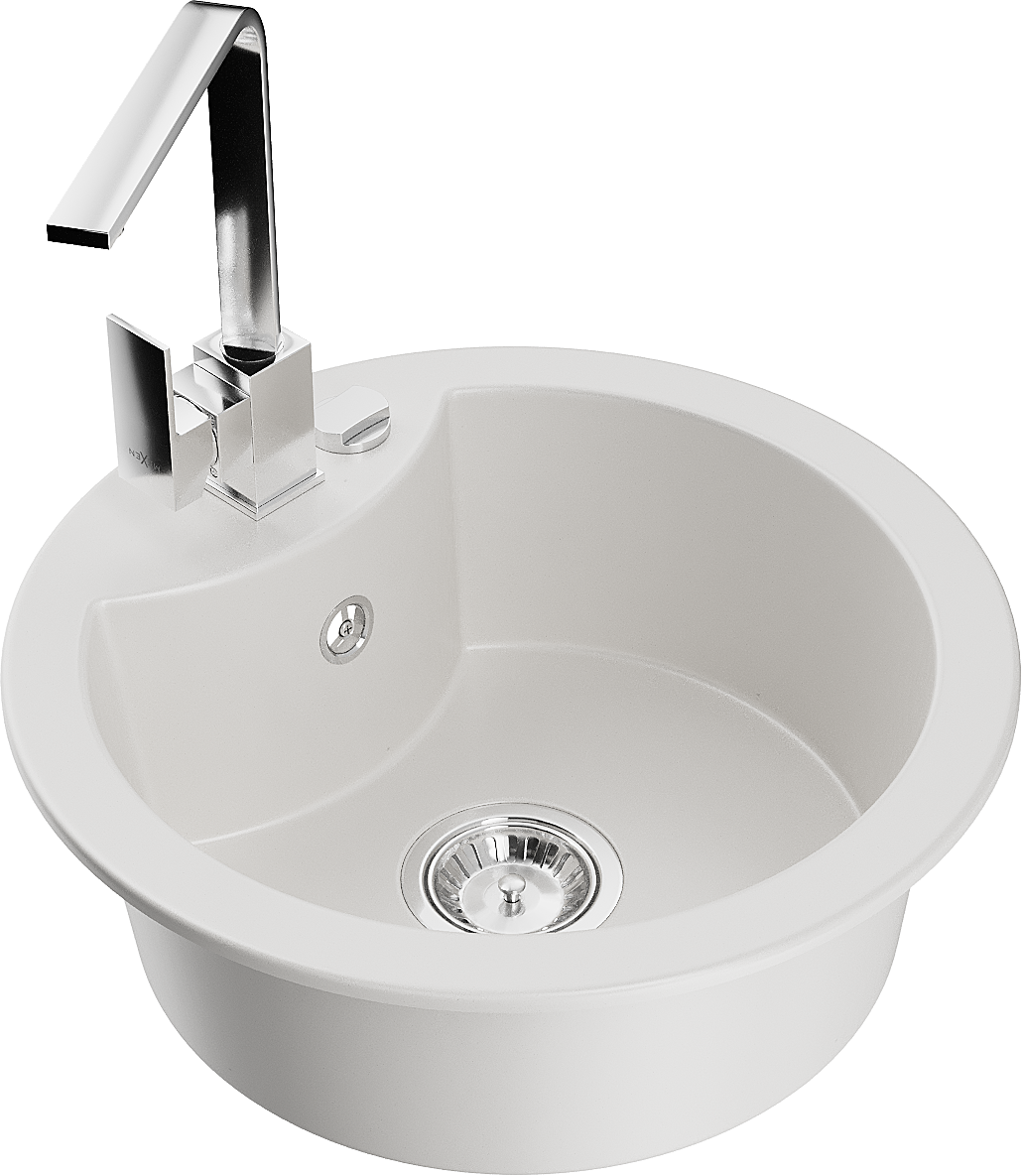 Mexen Diego vienos vonios granitinis nerūdijantis plautuvės rinkinys su virtuviniu maišytuvu Rita, baltas - 6512-20-670300-00