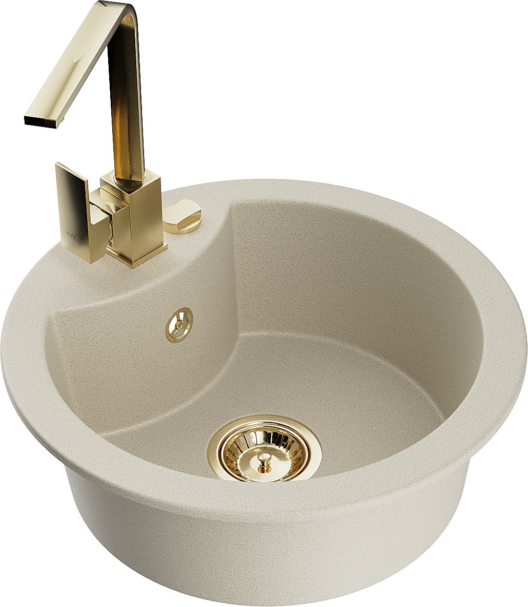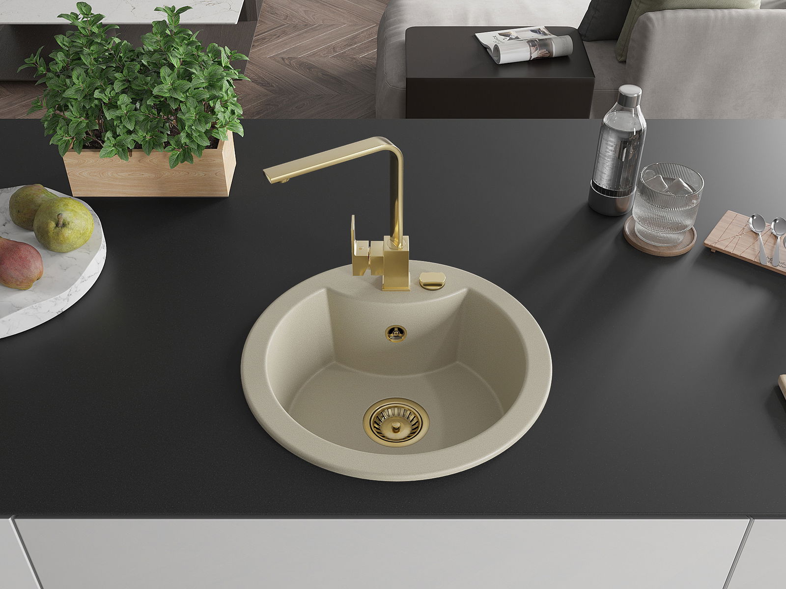 Mexen Diego granitinis virtuvinis plautuvės su viena kamera ir Rita maišytuvu, smėlio spalvos - 6512-69-670300-50