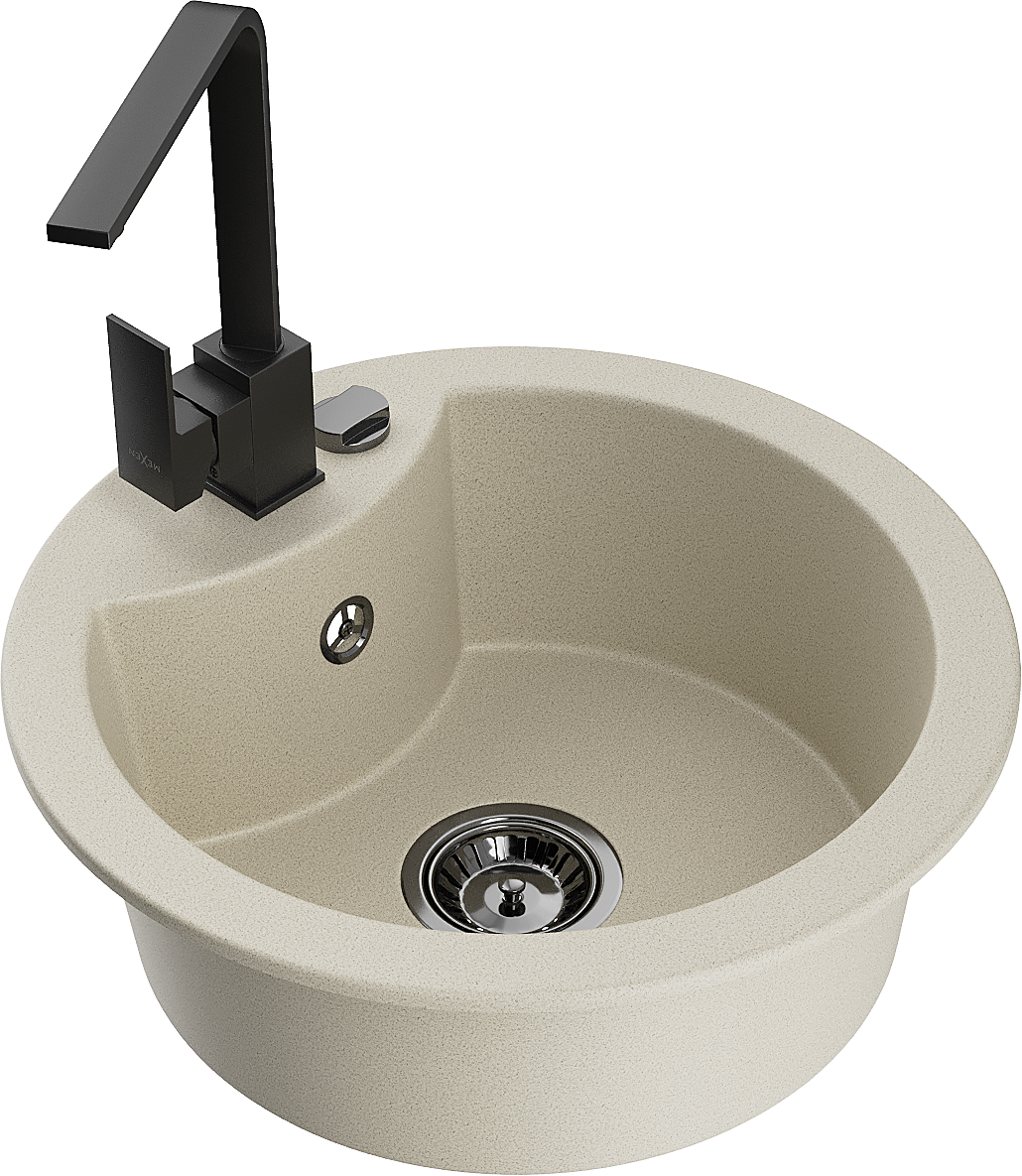 Mexen Diego granitinis plautuvės komplektas su Rita virtuviniu maišytuvu, smėlio spalvos - 6512-69-670300-70