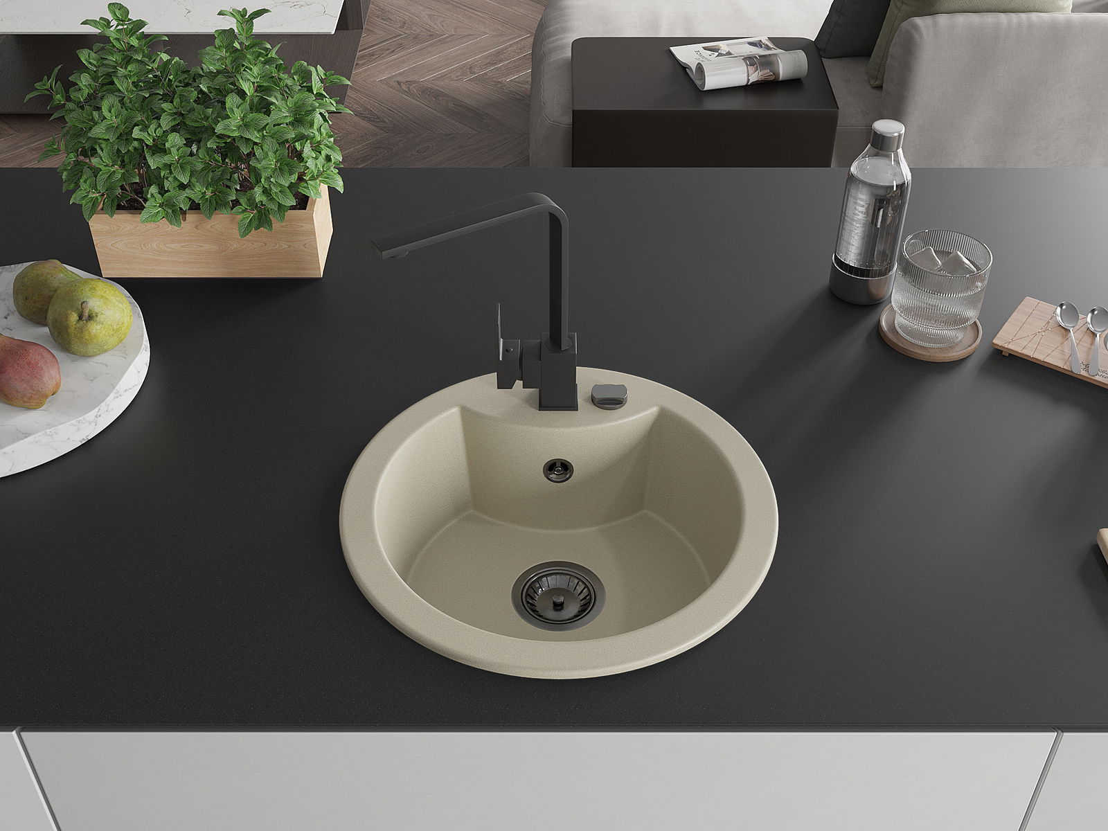 Kriauklės paviršius yra atsparus dėmėms ir spalvos pokyčiams, todėl jį lengva prižiūrėti ir jis išlaiko savo spalvą ilgą laiką. Estetiškai ir praktiškai papildo kiekvieną virtuvę.