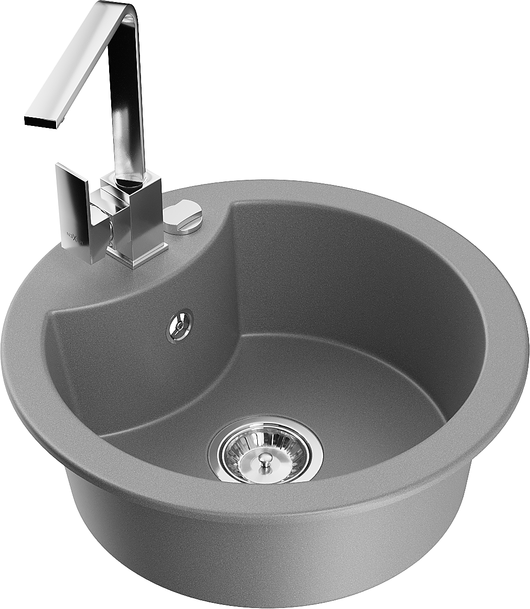 Mexen Diego granitinis vienos kameros virtuvinis kriauklė su maišytuvu Rita, pilkas - 6512-71-670300-00