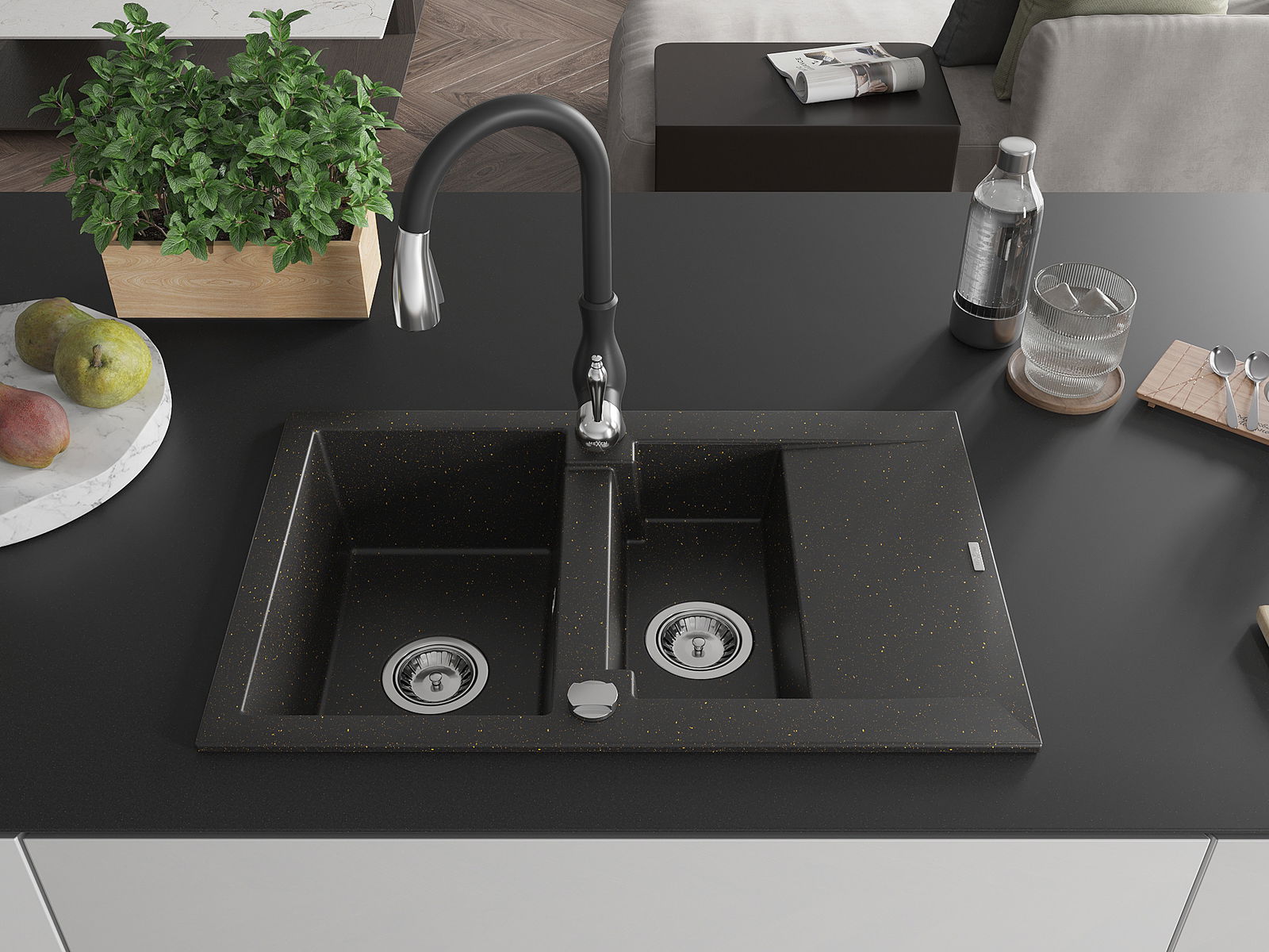 Kriauklės paviršius yra atsparūs dėmėms ir spalvos pasikeitimui, dėl kurio lengva valyti ir ilgą laiką išlaikyti savo spalvą. Estetinis ir praktiškai papildantis kiekvieną virtuvę.