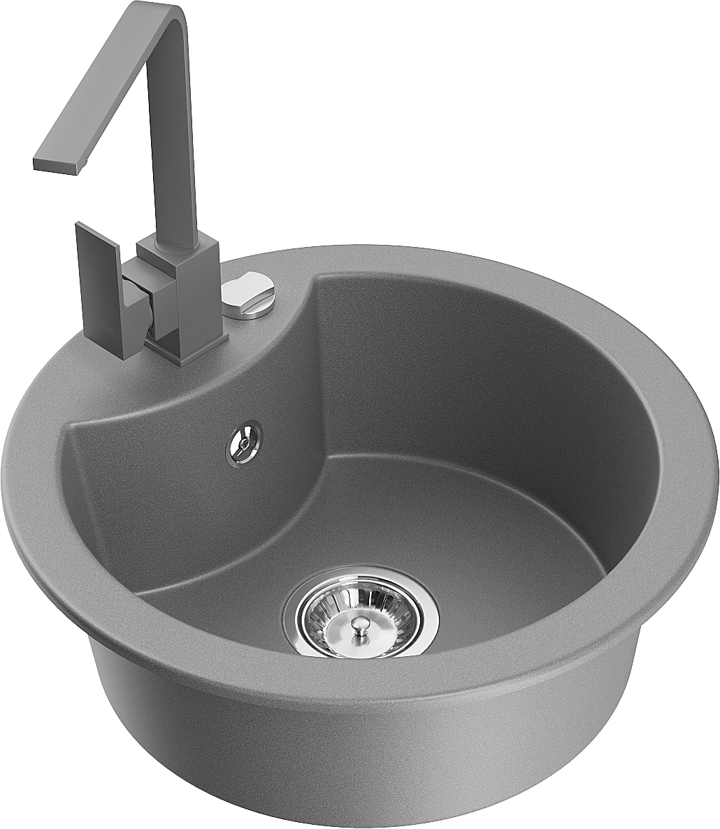 Mexen Diego vienos kameros granitinė kriauklė su virtuvės maišytuvu Rita, pilka - 6512-71-670300-71