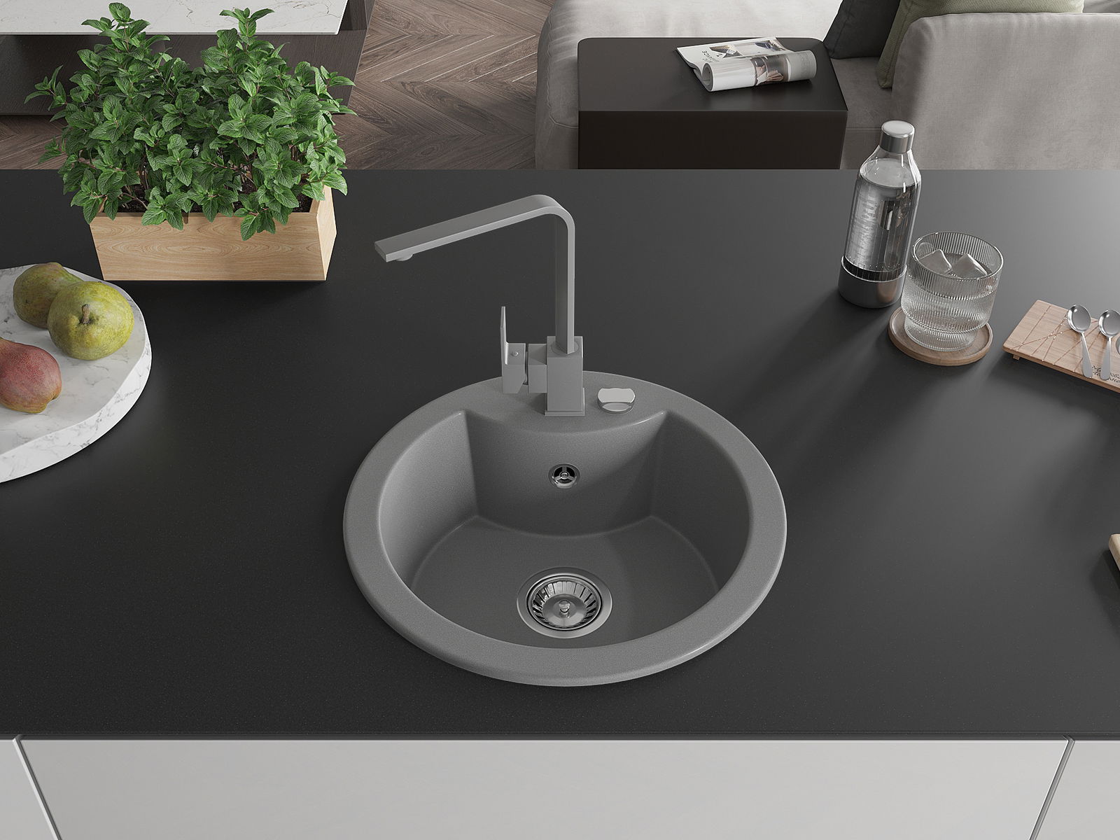 Kriauklės paviršius yra atsparūs dėmėms ir spalvos pasikeitimui, dėl kurio lengva valyti ir ilgą laiką išlaikyti savo spalvą. Estetinis ir praktiškai papildantis kiekvieną virtuvę.