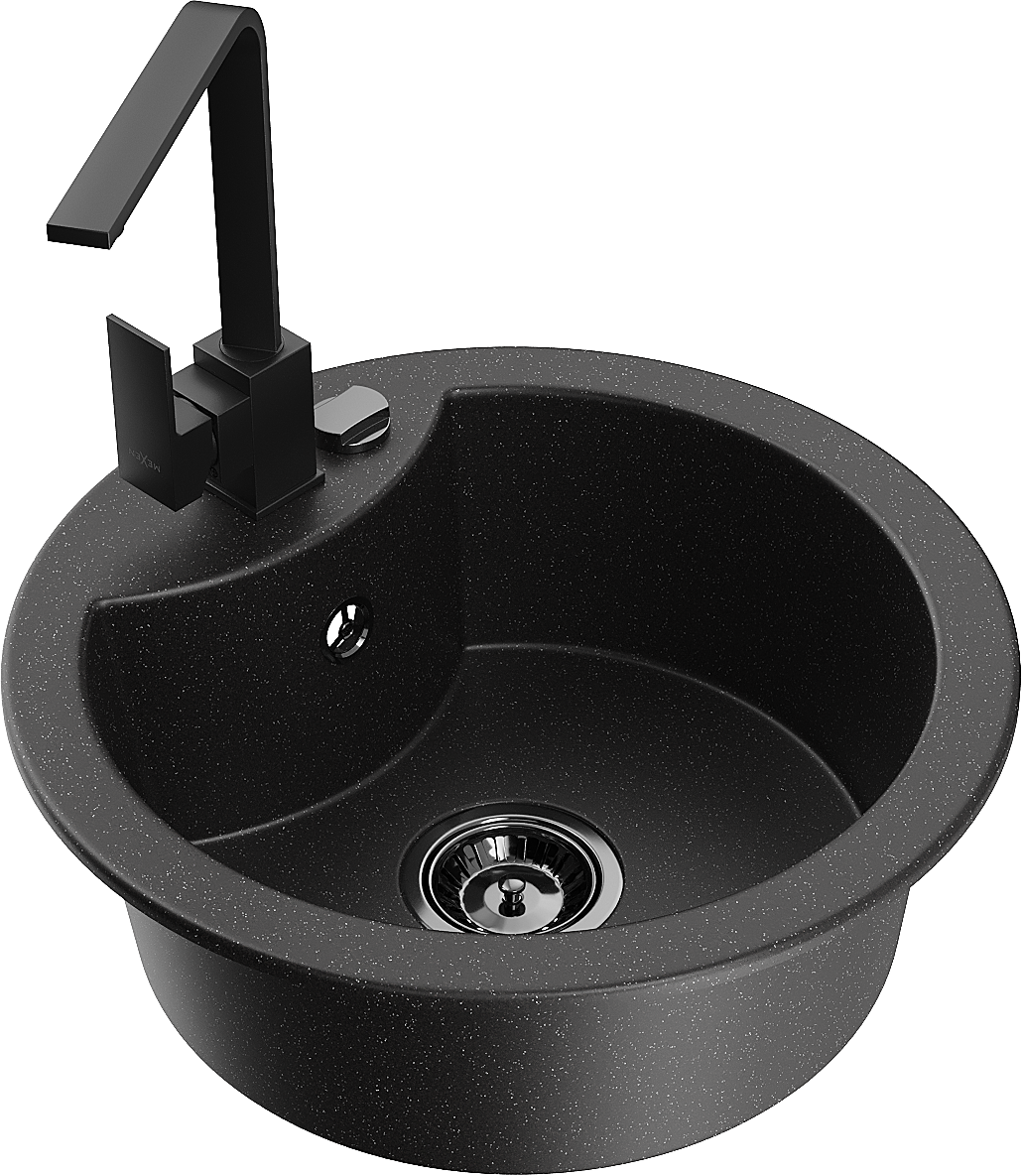 Mexen Diego granitinis vienos kameros plautuvė su Rita virtuvės maišytuvu, juodas/sidabrinis metalikas - 6512-73-670300-70-B