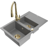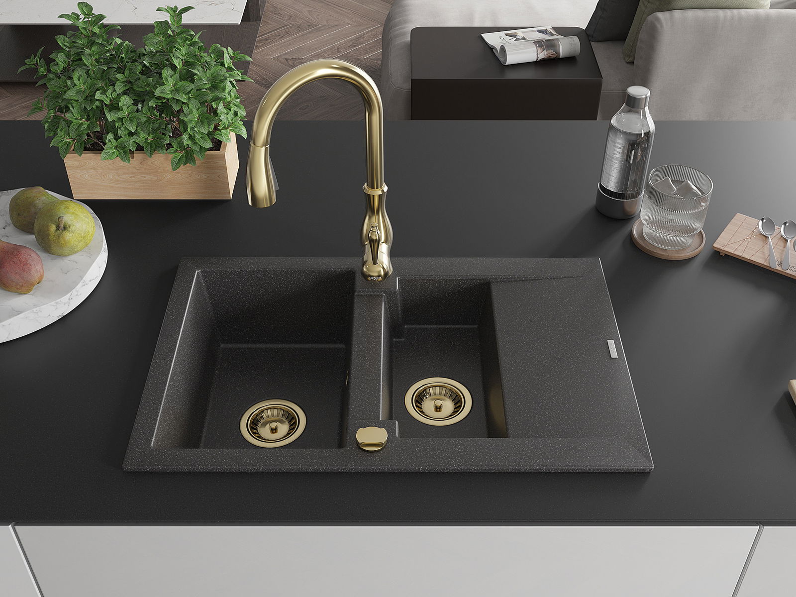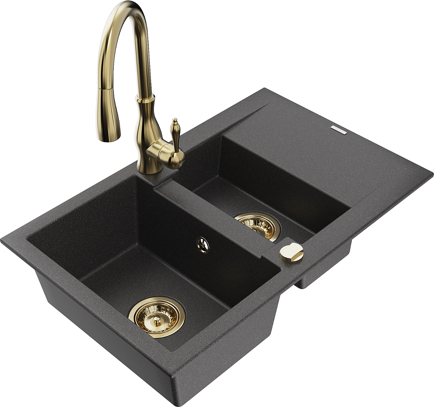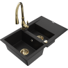 Mexen Gaspar 1,5 neprimkamo granitinis plautuvas su varvėjimu ir virtuviniu maišytuvu Savita, juodas dėmėtas