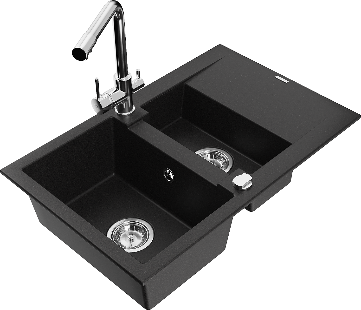 Mexen Gaspar granitinė 1,5 kamerų kriauklė su nusausintuvu ir virtuviniu maišytuvu Duero, juoda - 6507-77-671600-00
