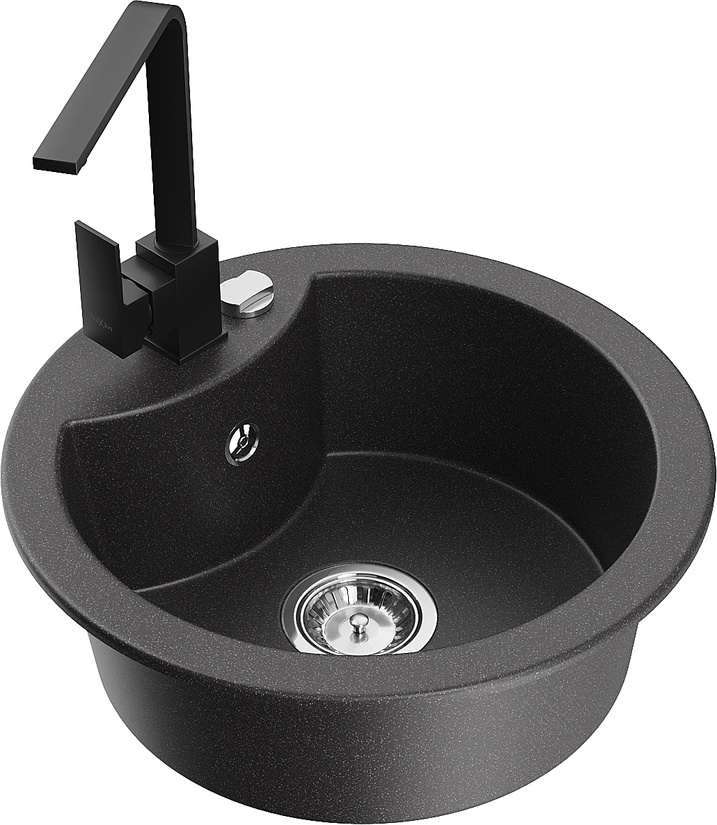 Mexen Diego granito plautuvė 1 skyrelio su virtuviniu maišytuvu Rita, juodas dėmėtas - 6512-76-670300-70
