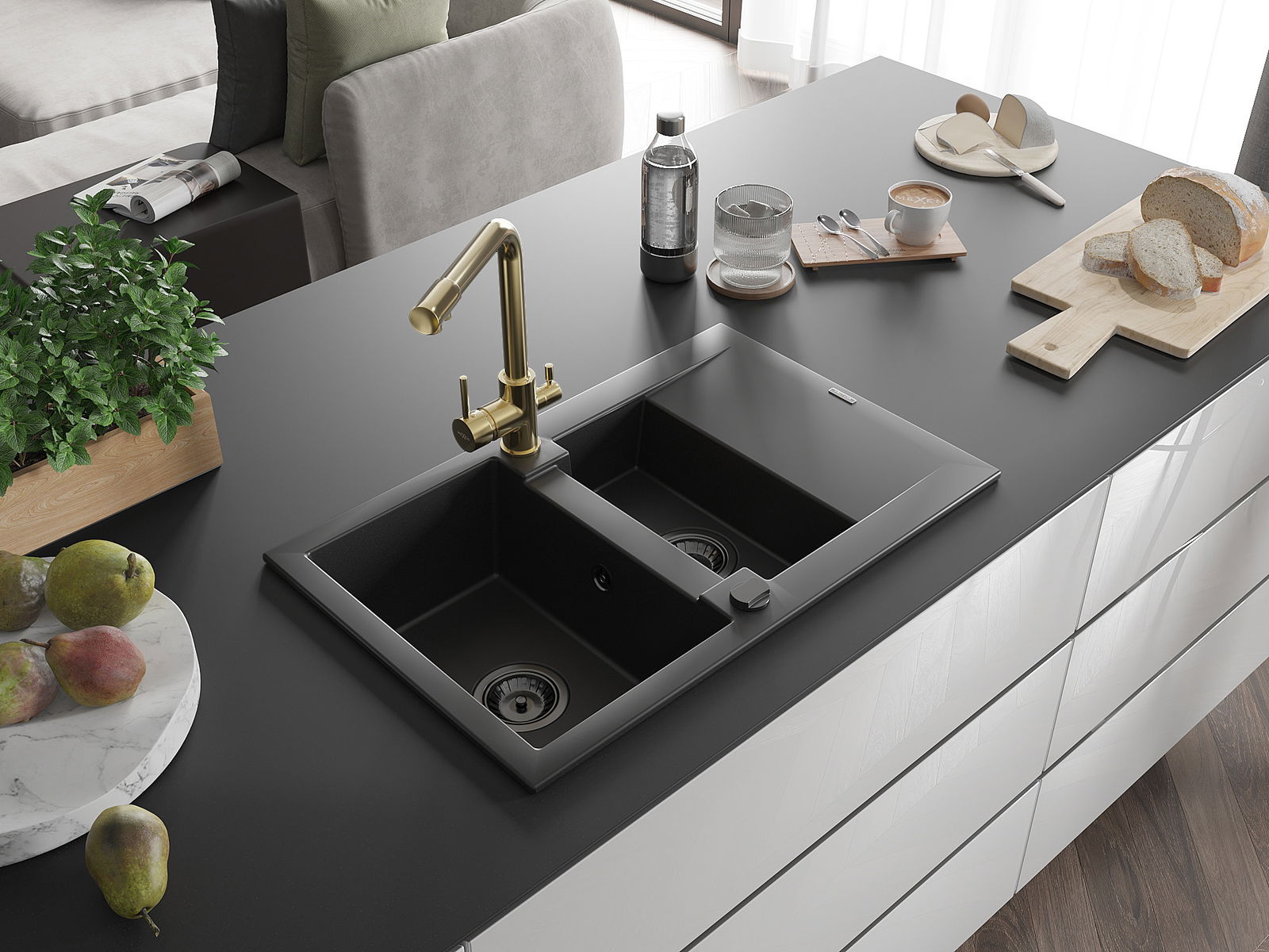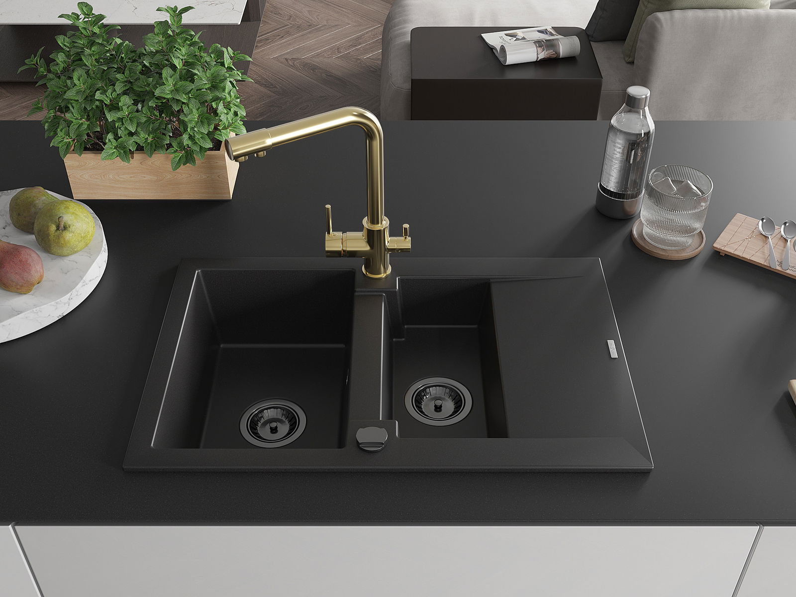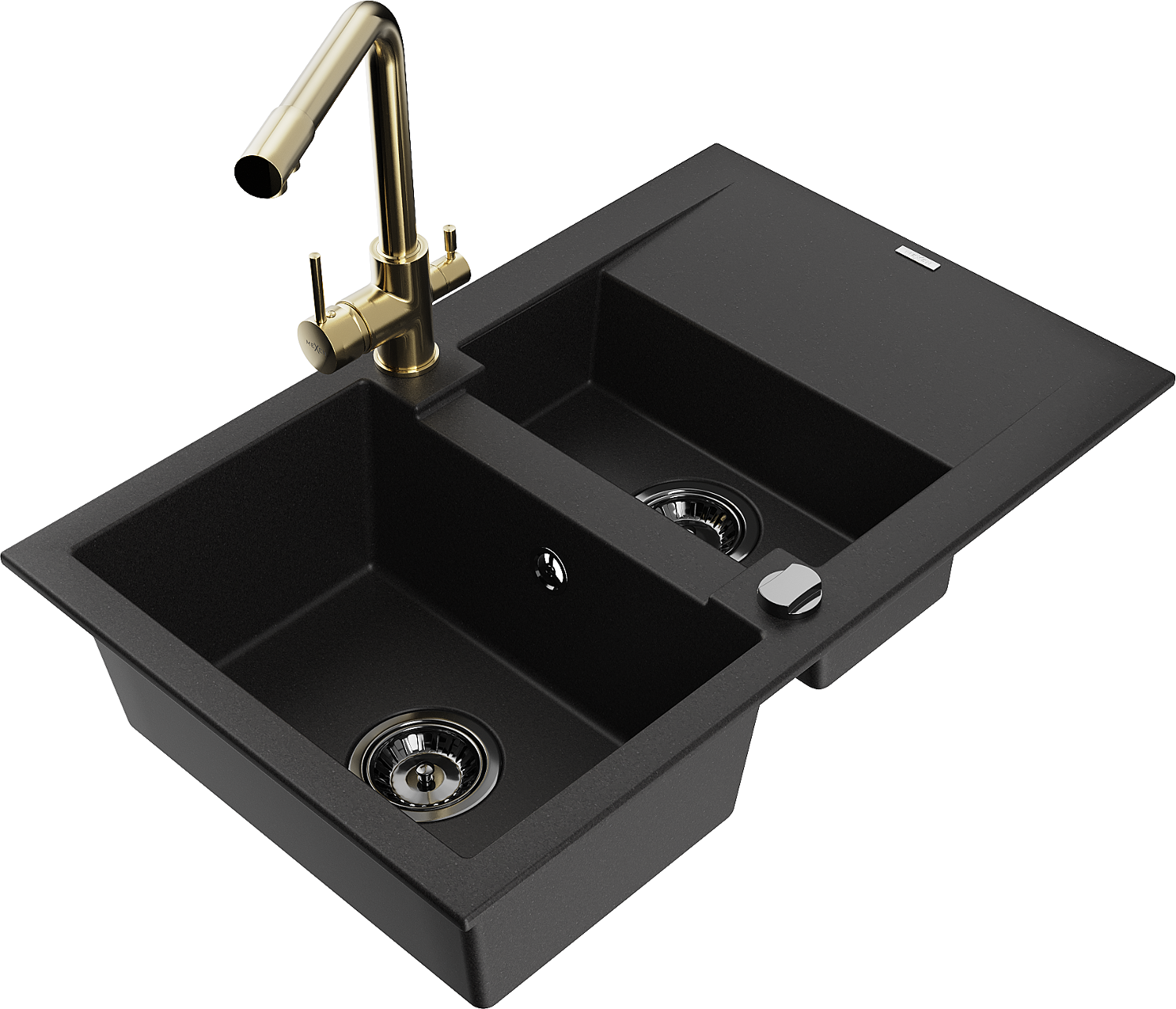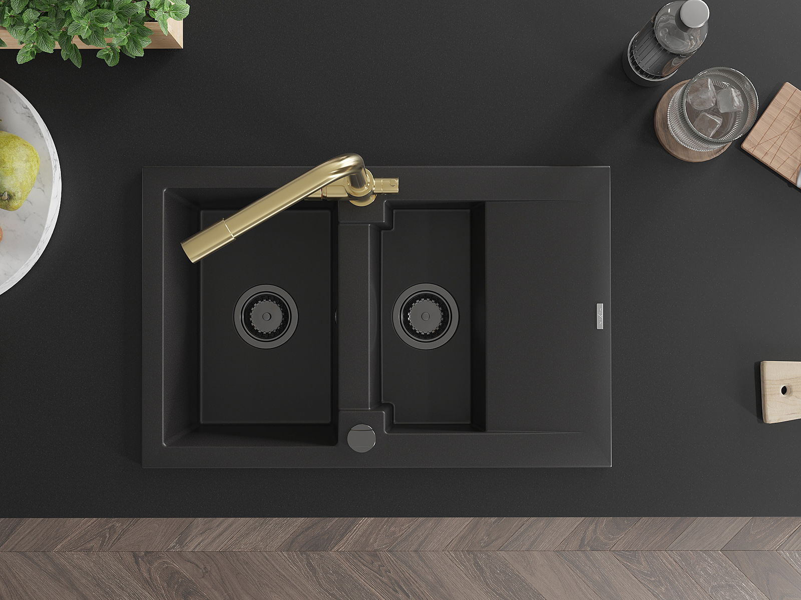 Mexen Gaspar granitinis 1,5 sekcijos plautuvė su lašėjimo paviršiumi ir virtuvės čiaupu Duero, juodas - 6507-77-671600-50-B