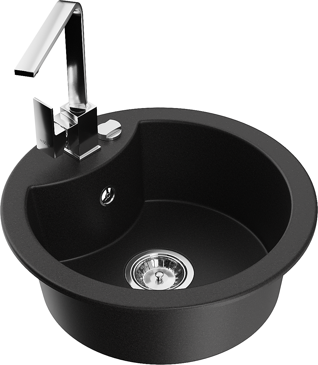 Mexen Diego granito virtuvės kriauklė, vienos kameros, su virtuvės maišytuvu Rita, juodas - 6512-77-670300-00