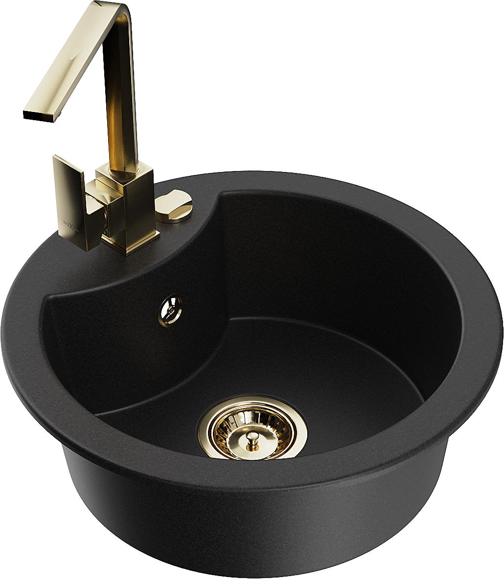 Mexen Diego granito virtuvės plautuvė su viena kamera ir virtuviniu maišytuvu Rita, juoda - 6512-77-670300-50