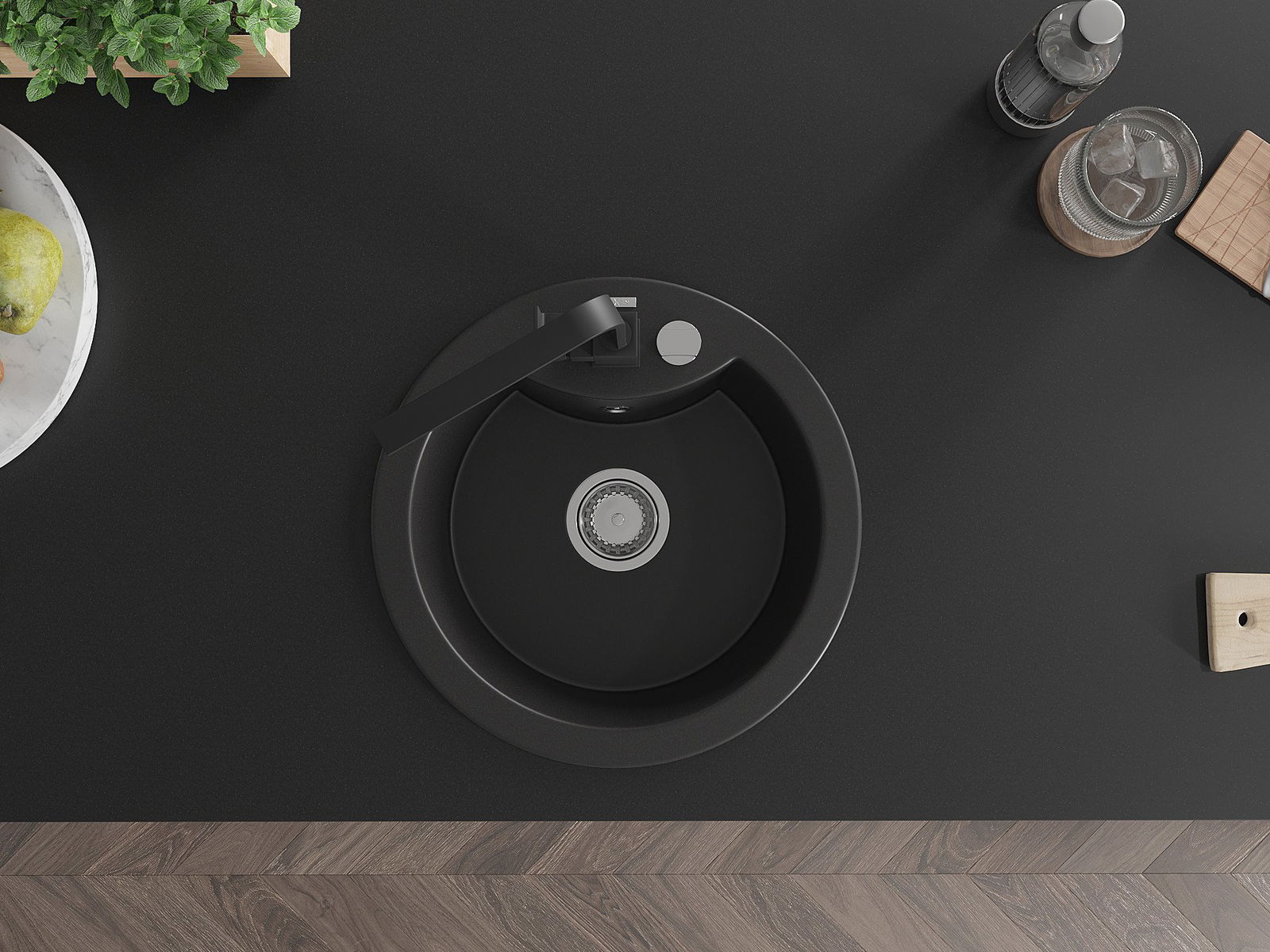 Mexen Diego vienos kambario granitinė kriauklė su virtuviniu maišytuvu Rita, juoda - 6512-77-670300-70