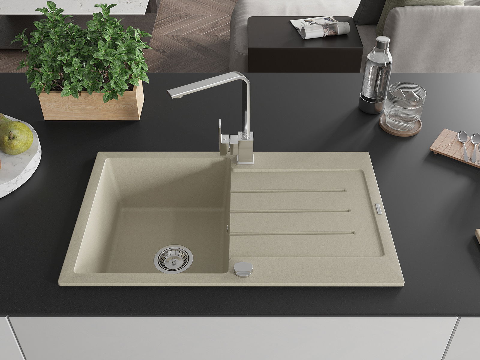 Kriauklės paviršius yra atsparus dėmėms ir spalvos pokyčiams, todėl jį lengva prižiūrėti ir jis išlaiko savo spalvą ilgą laiką. Estetiškai ir praktiškai papildo kiekvieną virtuvę.