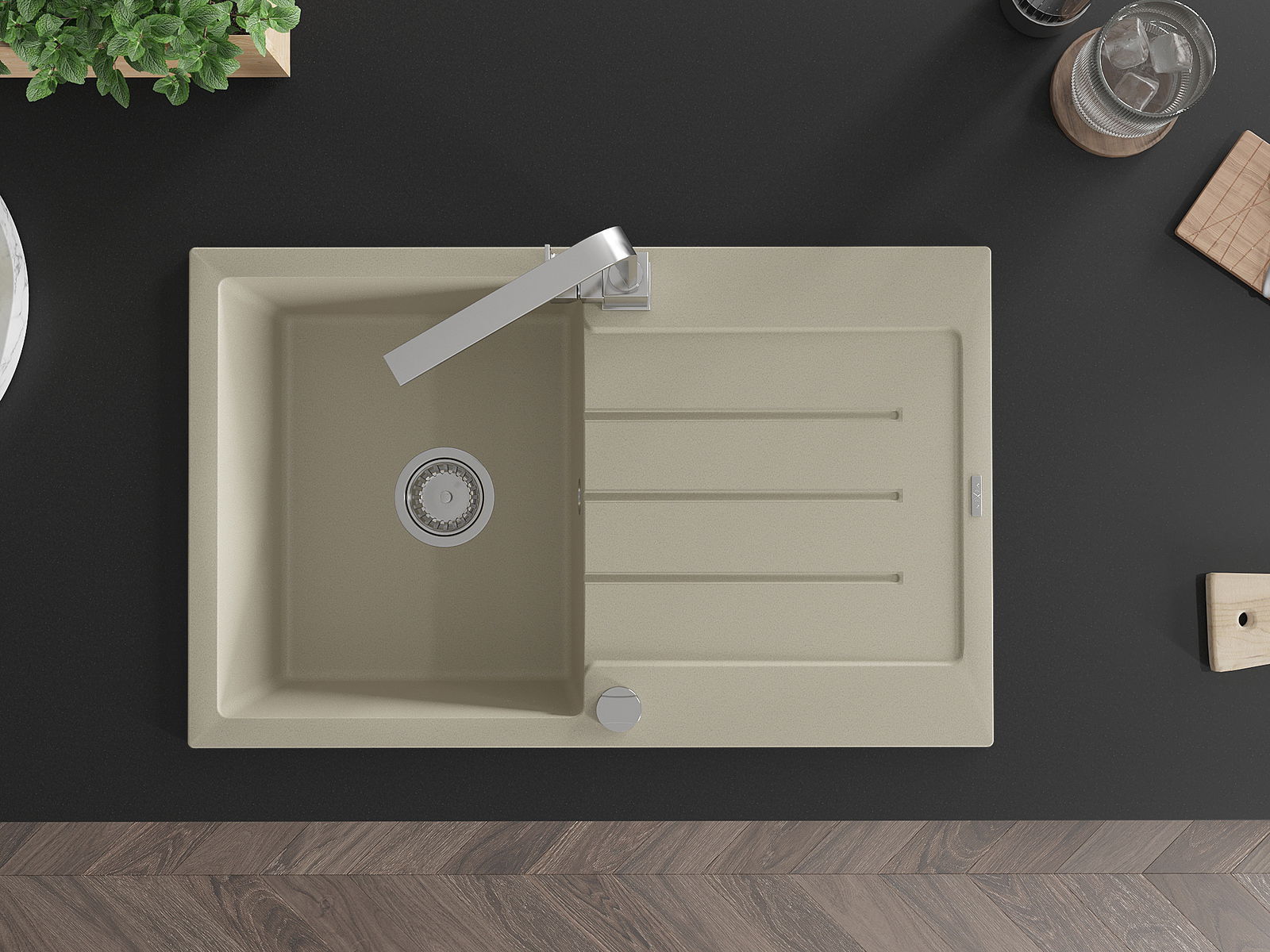 Mexen Bruno 1 kamerų granitinė kriauklė su nutekėjimu ir virtuvės maišytuvu Rita, smėlio spalvos - 6513-69-670300-00