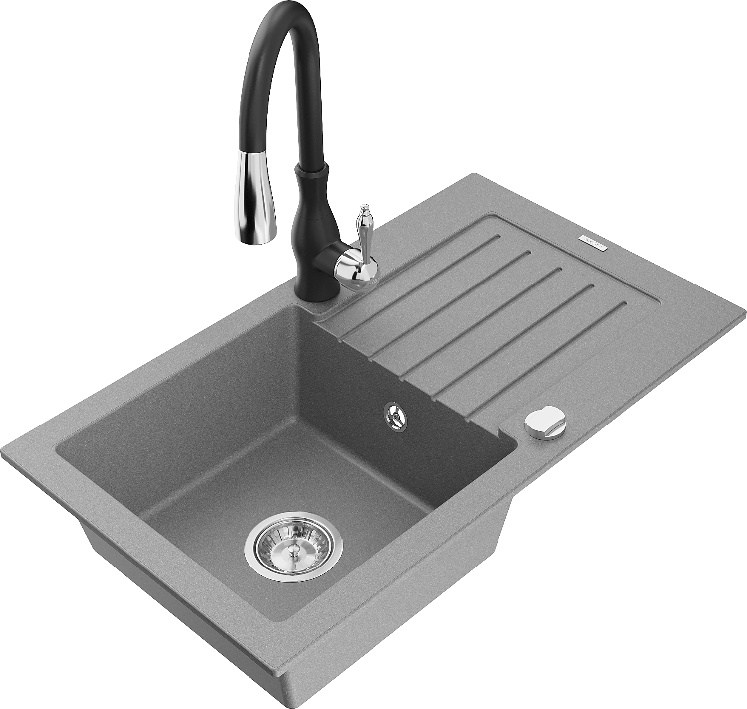 Mexen Pablo granitinė plautuvė 1 dubens su nusausinimo paviršiumi ir Savita virtuvės maišytuvu, pilka - 6510-71-672601-70