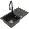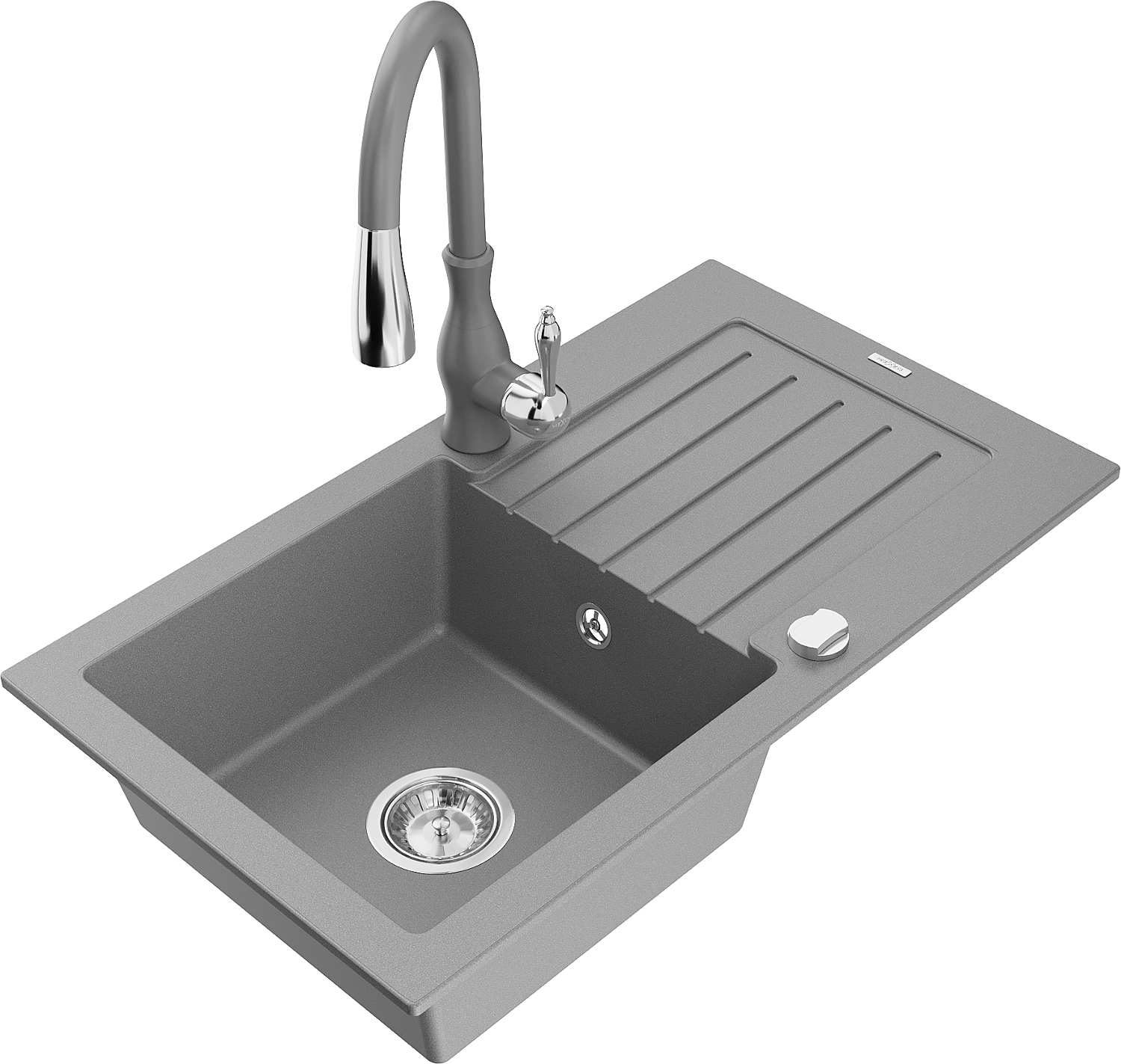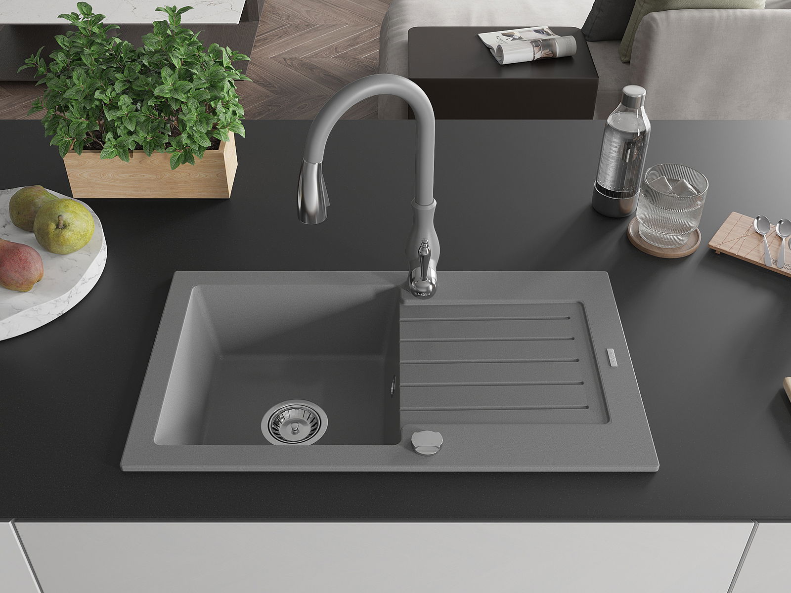 Mexen Pablo granito virtuvės kriauklė, vienos kameros su nusausintuvu ir virtuvės maišytuvu Savita, pilkas - 6510-71-672601-71