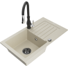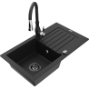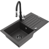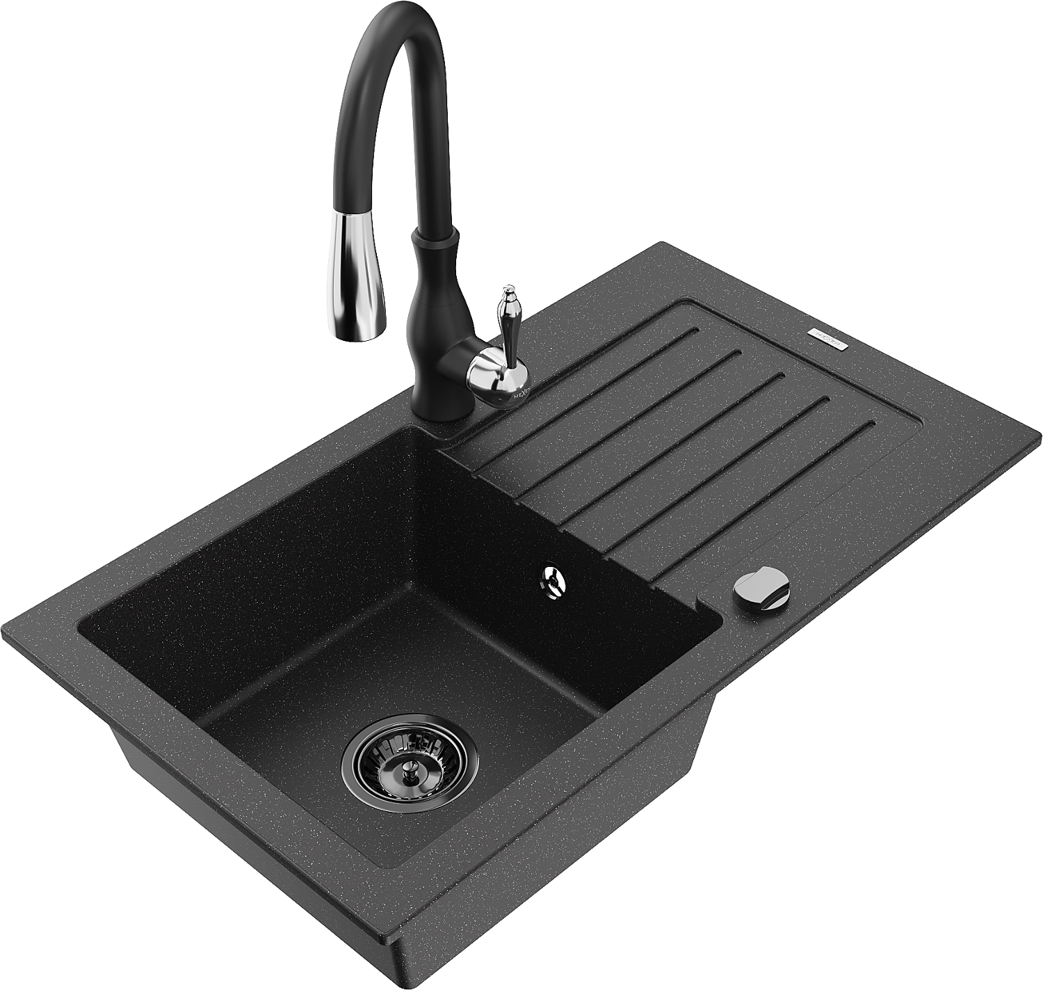 Mexen Pablo granitinė vienos kameros plautuvė su nusausintuvu ir virtuviniu maišytuvu Savita, juoda/sidabrinė
