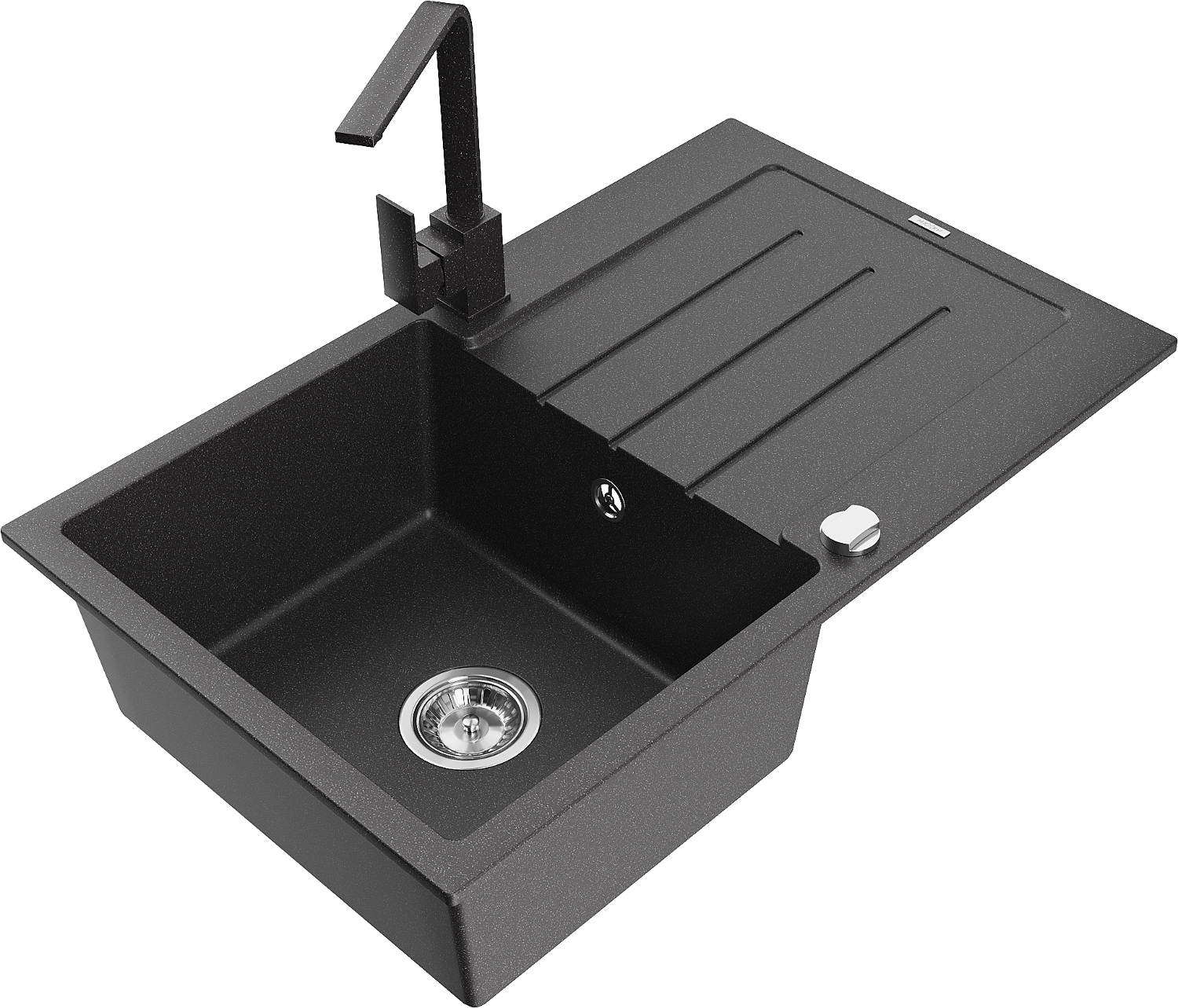 Mexen Bruno granitinis vienos sekcijos plautuvė su nutekėjimo zona ir virtuves kranu Rita, juodas dėmėtas - 6513-76-670300-76
