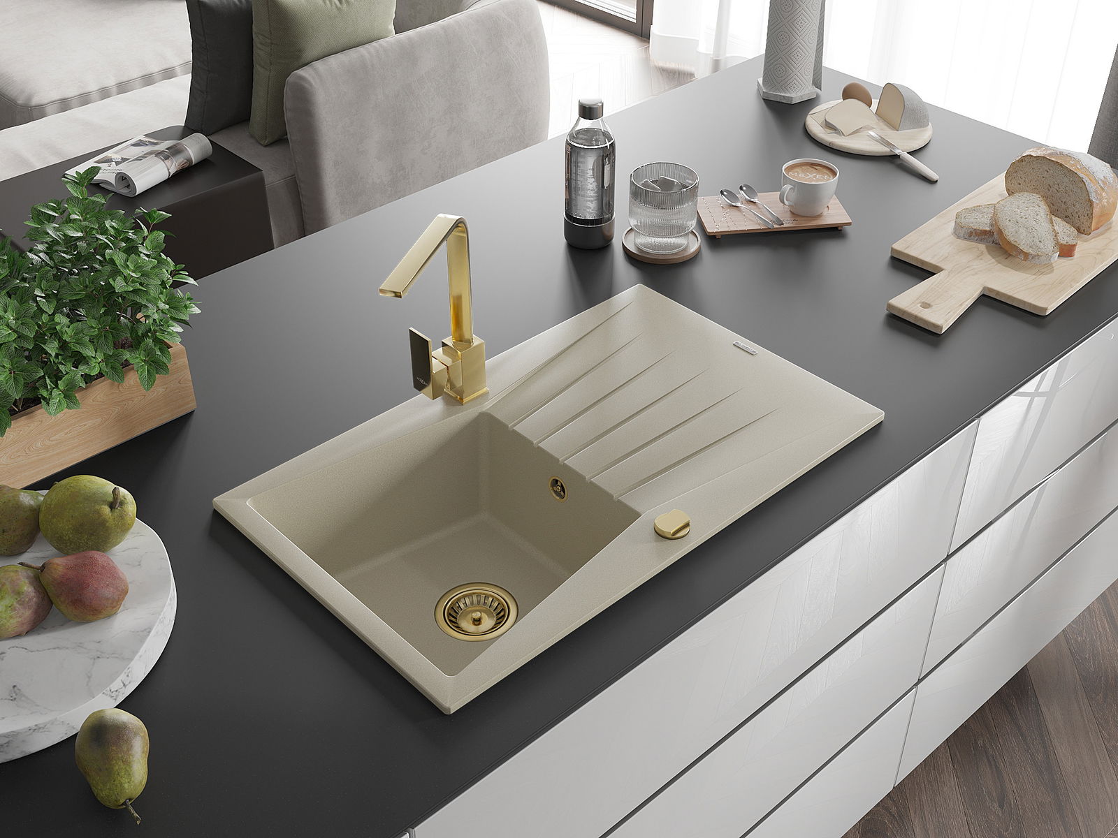Kriauklės paviršius yra atsparūs dėmėms ir spalvos pasikeitimui, dėl kurio lengva valyti ir ilgą laiką išlaikyti savo spalvą. Estetinis ir praktiškai papildantis kiekvieną virtuvę.