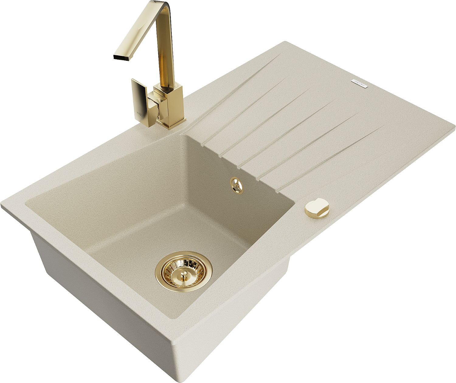 Mexen Cesar granito plautuvė vienakamerinė su nusausintuvu ir virtuviniu maišytuvu Rita, smėlio - 6514-69-670300-50
