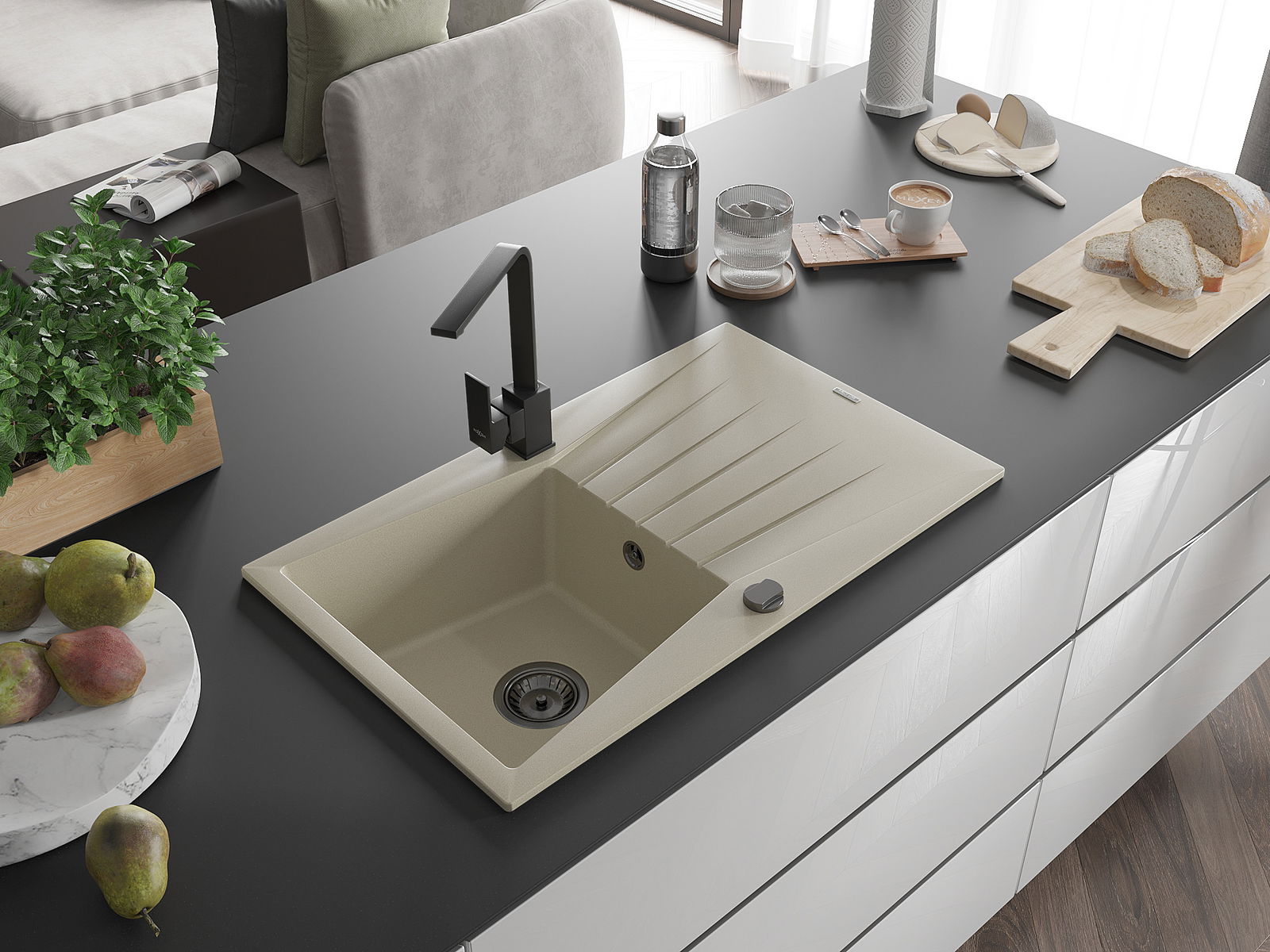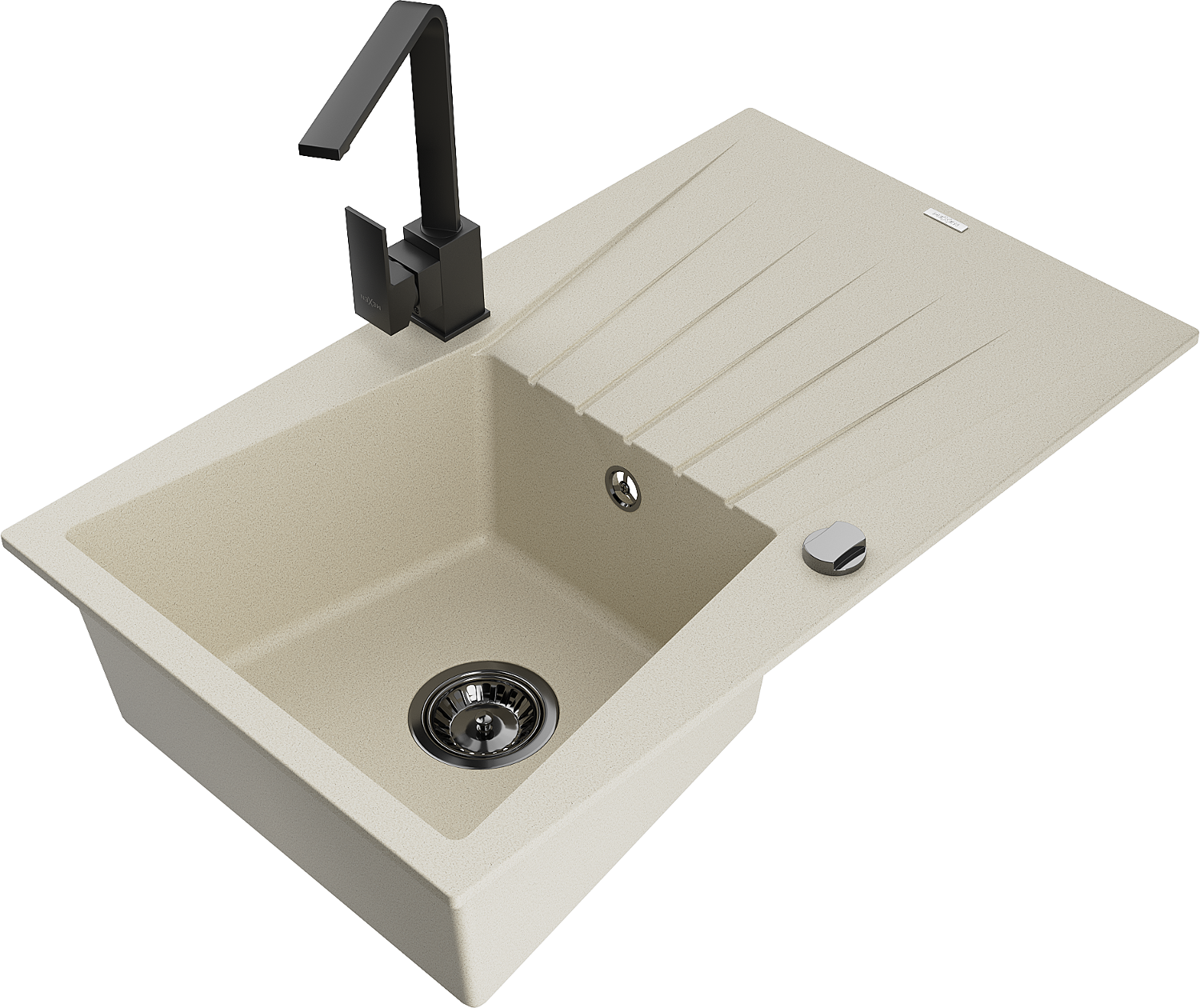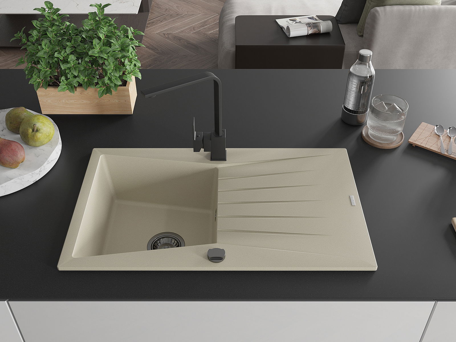 Mexen Cesar granitinė vienos plautuvės kriauklė su dvejamu stalviršiu ir virtuviniu maišytuvu Rita, smėlinė
