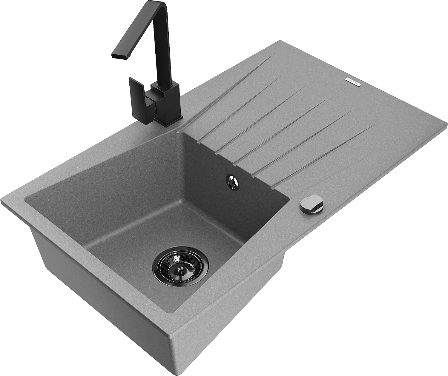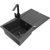 Mexen Cesar granitinė vienos kameros kriauklė su nutekėjimu ir virtuvės maišytuvu Rita, pilkas - 6514-71-670300-70-B