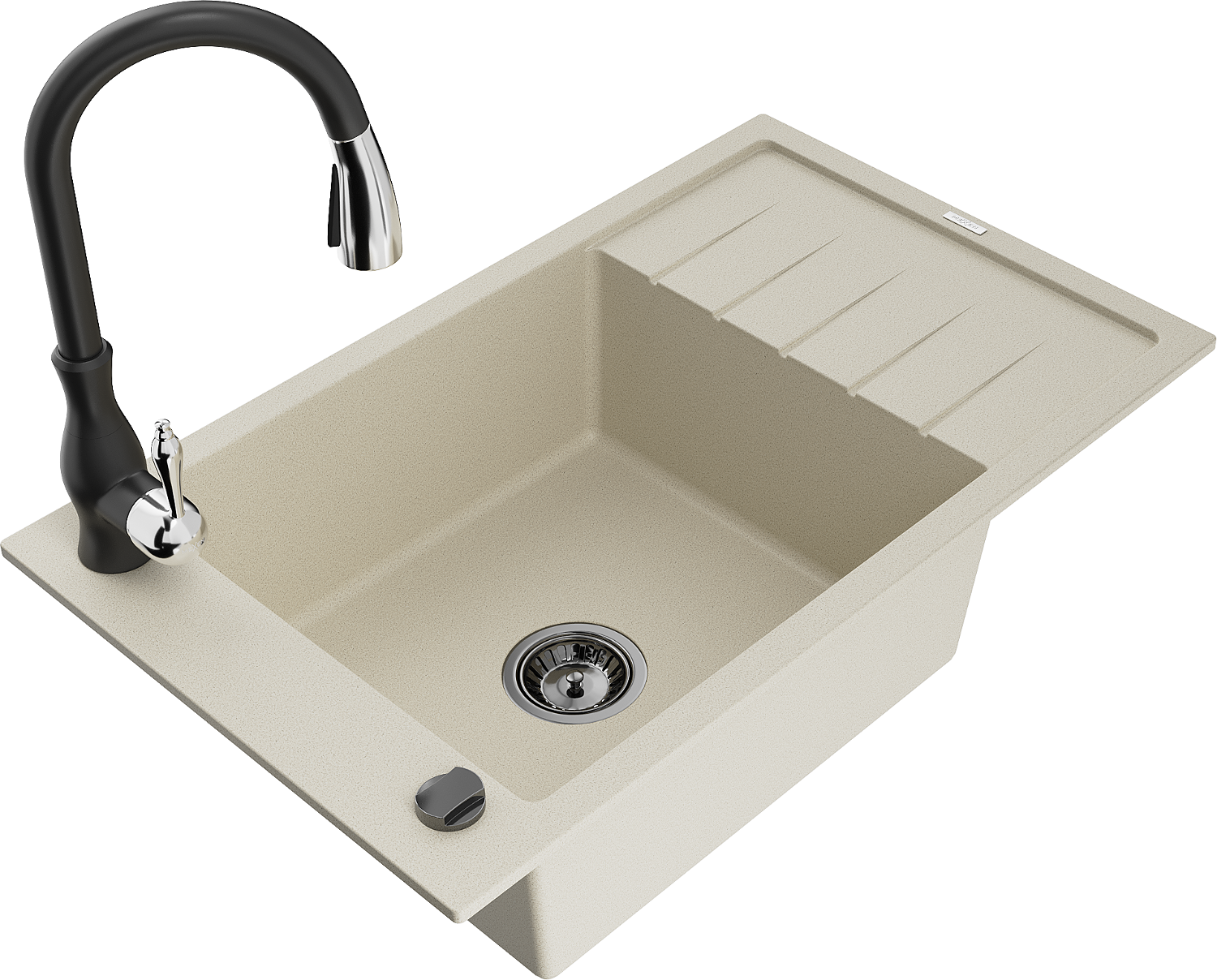 Mexen Elias granito plautuvė vienkamerė su nusausintuvu ir virtuviniu maišytuvu Savita, smėlinė - 6511-69-672601-70