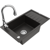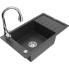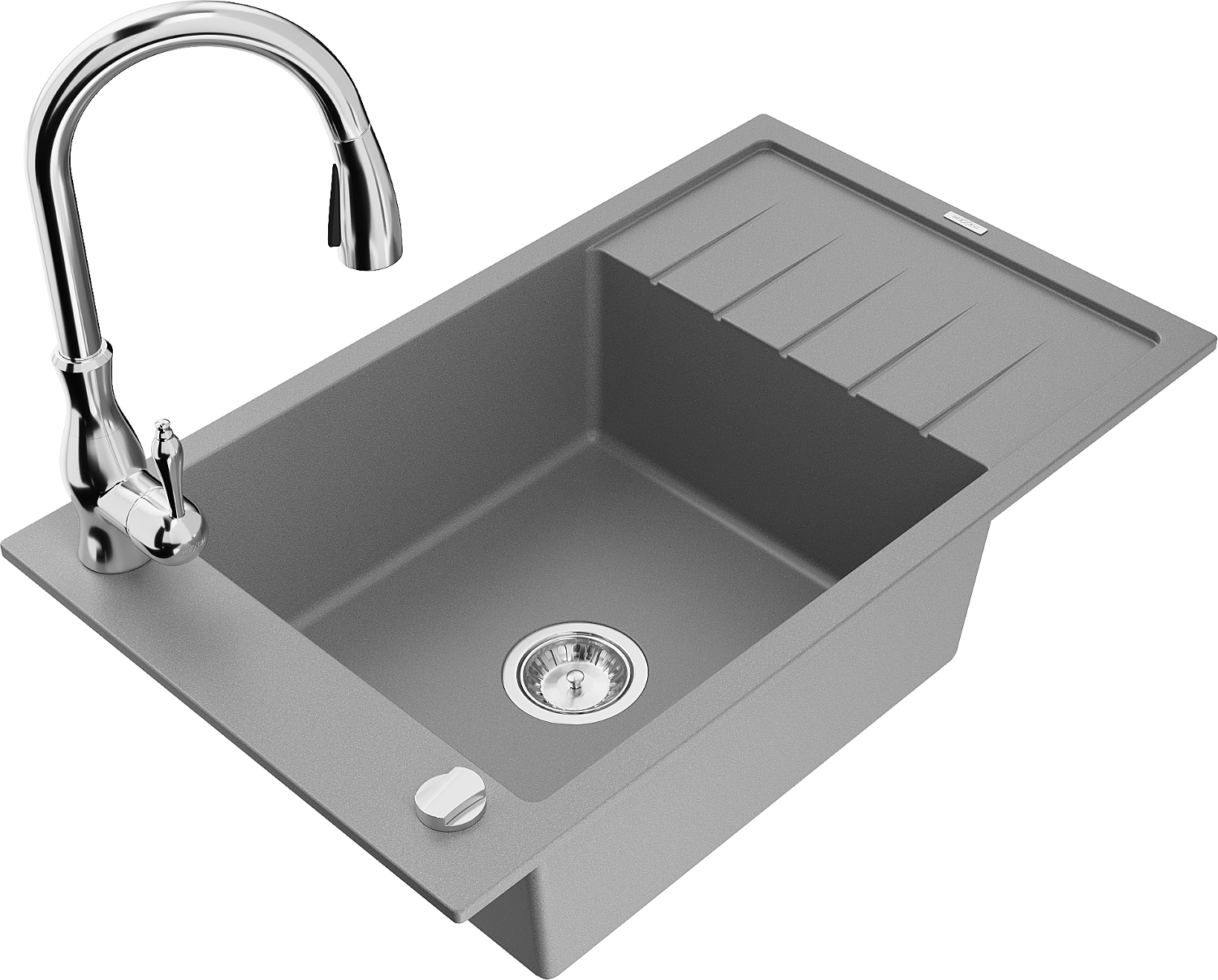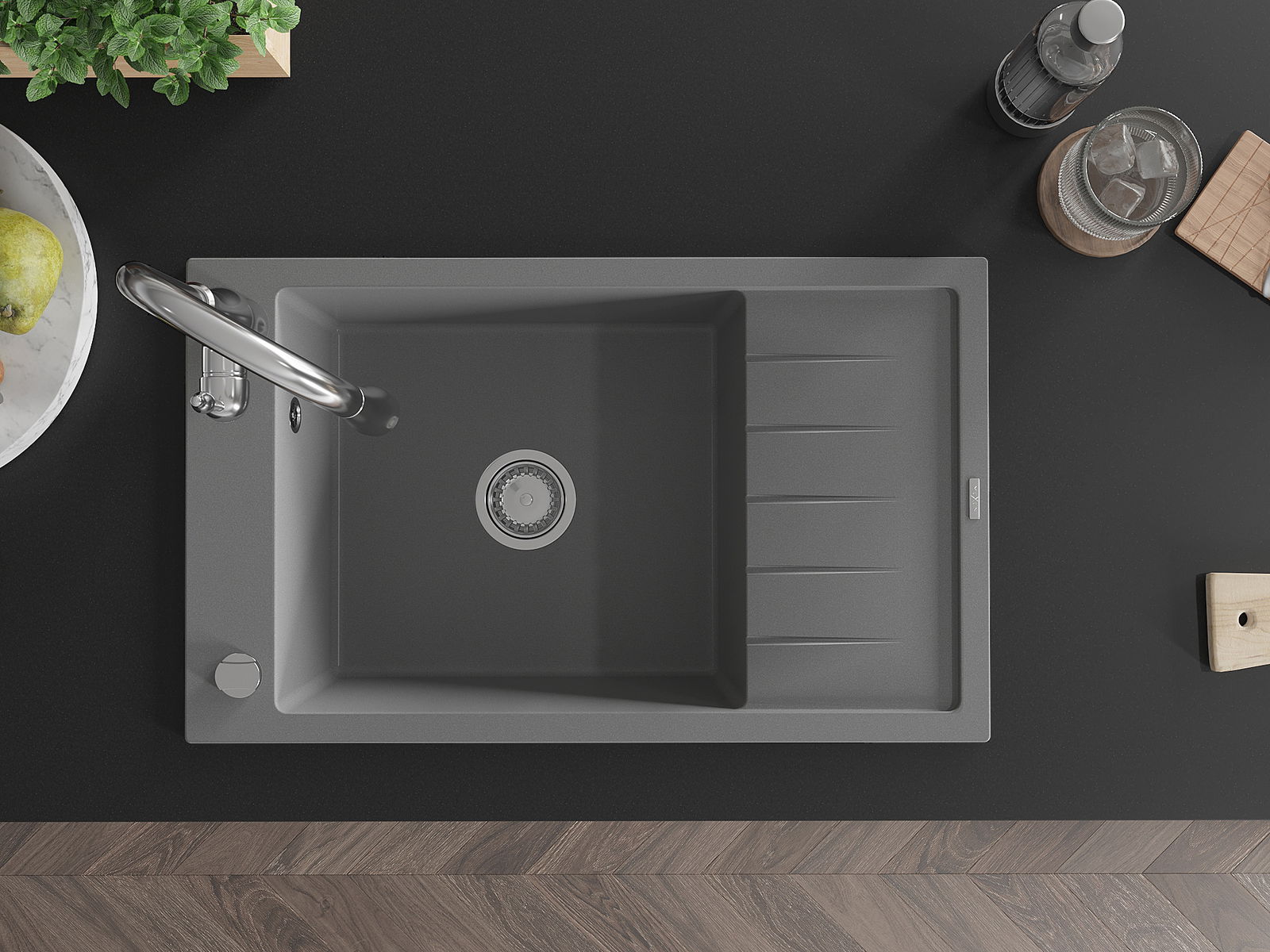 Mexen Elias granitinė vieno dubens virtuvės kriauklė su nusausintuvu ir virtuviniu maišytuvu Savita, pilka
