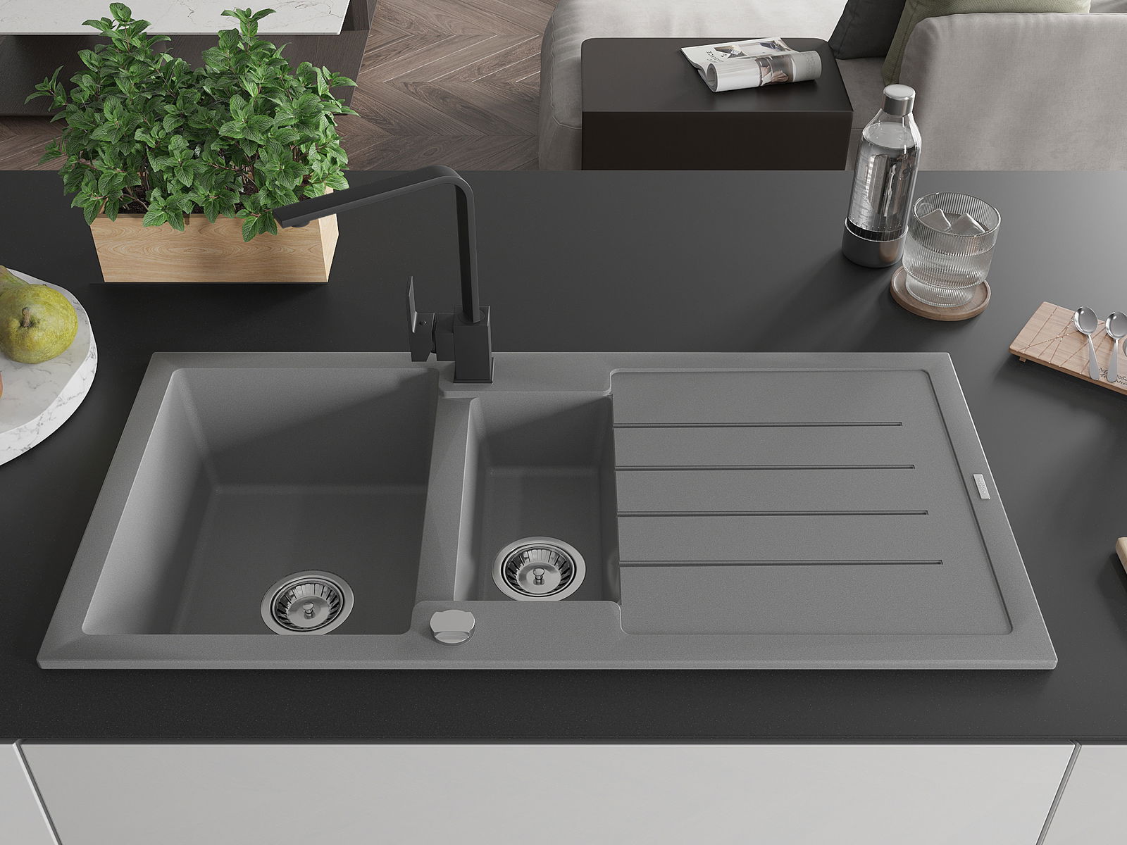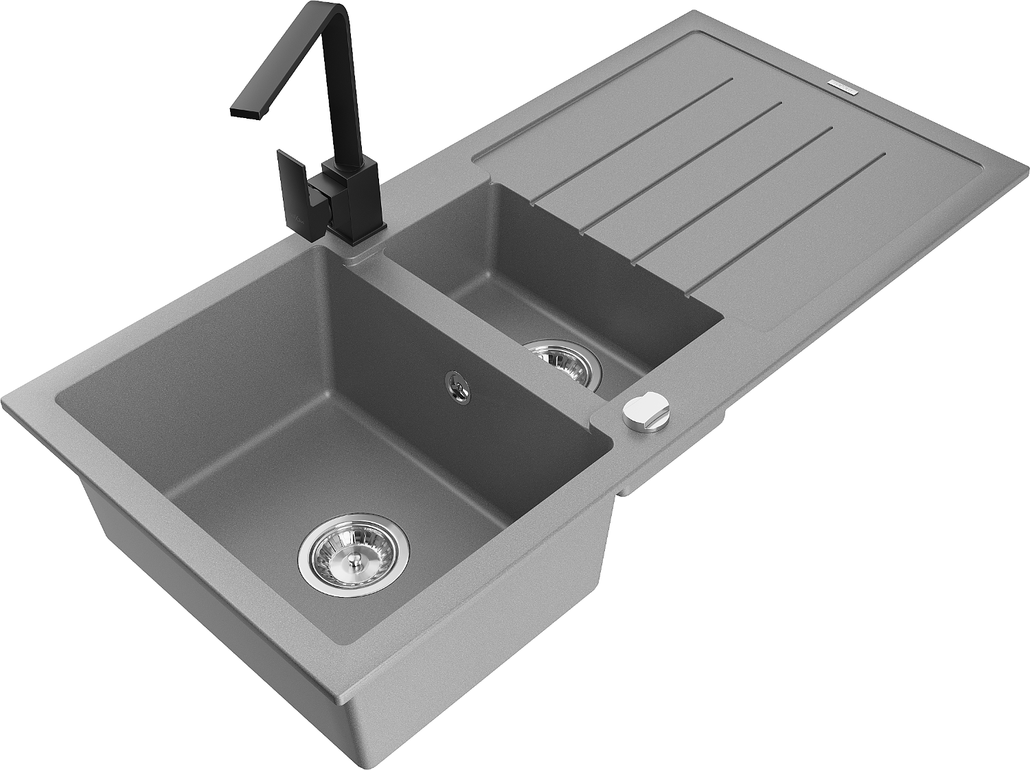 Mexen Andres granito plautuvė 1,5 skyriaus su nusileidimu ir maišytuvu Rita, pilka - 6515-71-670300-70